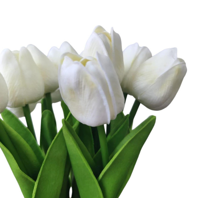 Buque De Tulipas Branca Com 10 Hastes Flores Artificiais Botões De EVA