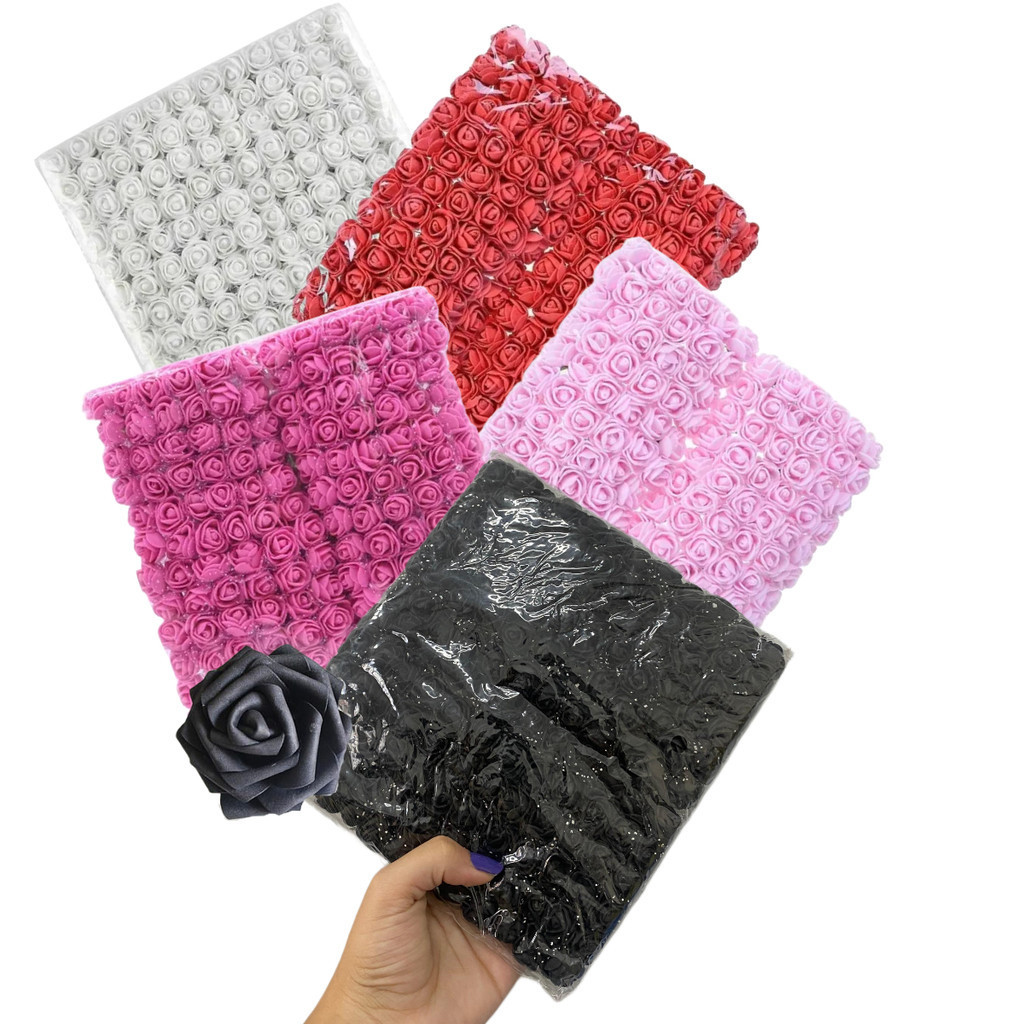 144 Mini Rosas Artificial De Eva Seda - Pacote Com Branco