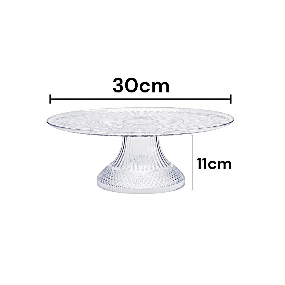 Boleira 30CM , Lapidada - Boleira Acrílico Transparente, Suporte Bolo MR