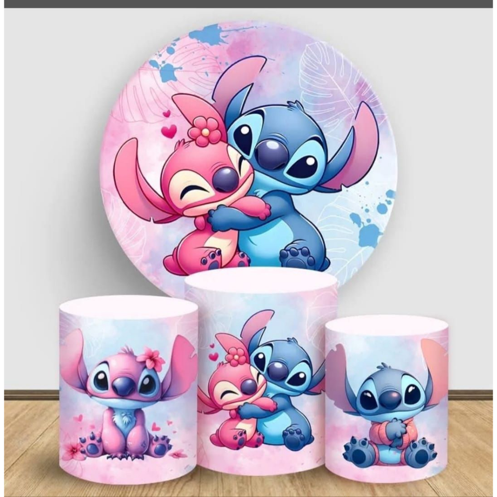 Kit Capa De Painel Redondo + Trio Capa De Cilindro Decoração De Festa Tema Lilo stitch Color