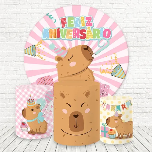 Kit Painel Redondo + Capa De Cilindro Decoração Tema Capivara Fofinha