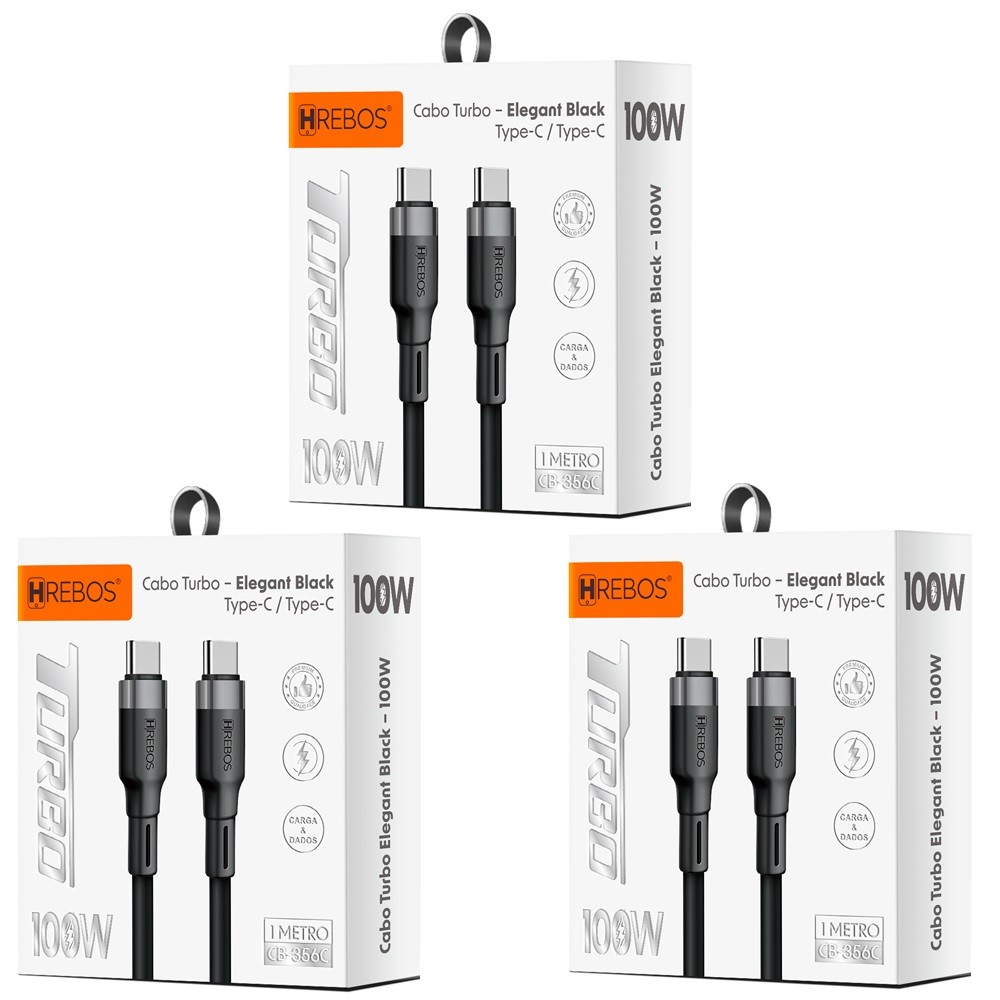 Kit 3 Cabos Elegant Black 60w 1 Metro Duplo Tipo C (CB-356C)