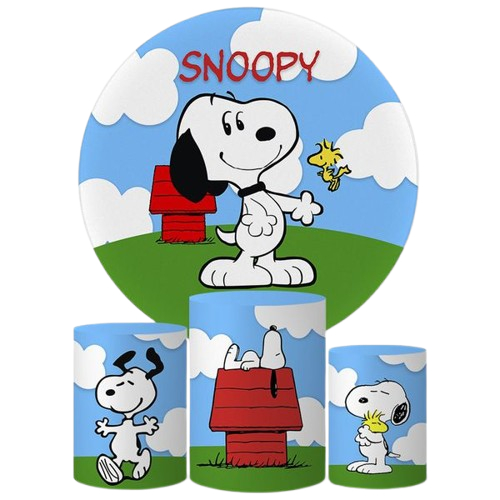Kit Capas Painel Redondo E Capas De Cilindro Sublimados Decoração Snoopy