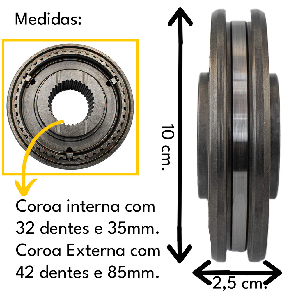 SINCRONIZADOR 1° E 2° MARCHA KIA TOPIC BESTA E BESTA GS 2.7 3.0 8v 1994 a 2005 - 9MM 007608100