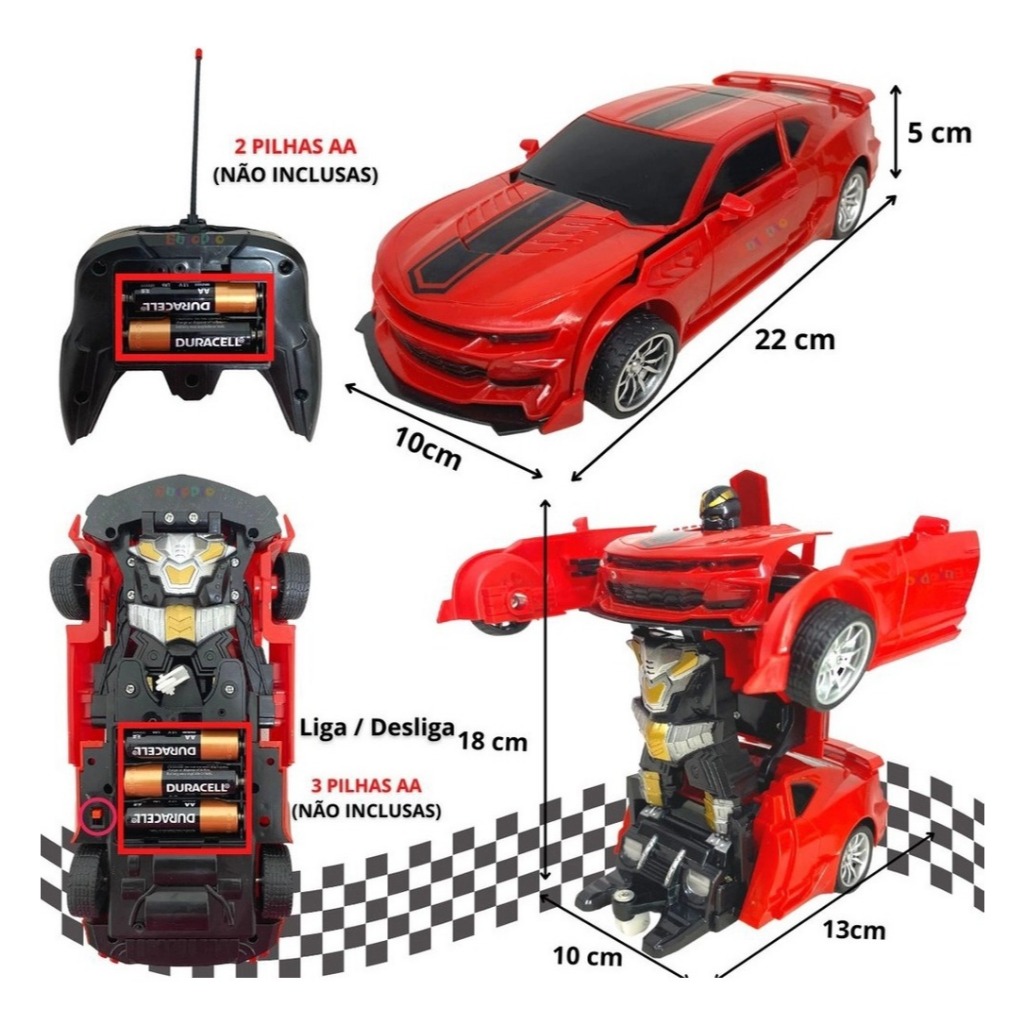 Carrinho Controle Remoto 2 em 1 Vira Robô Transformers Brinquedo