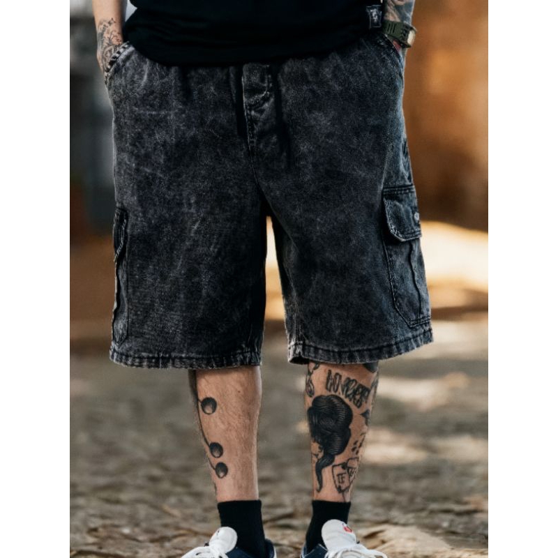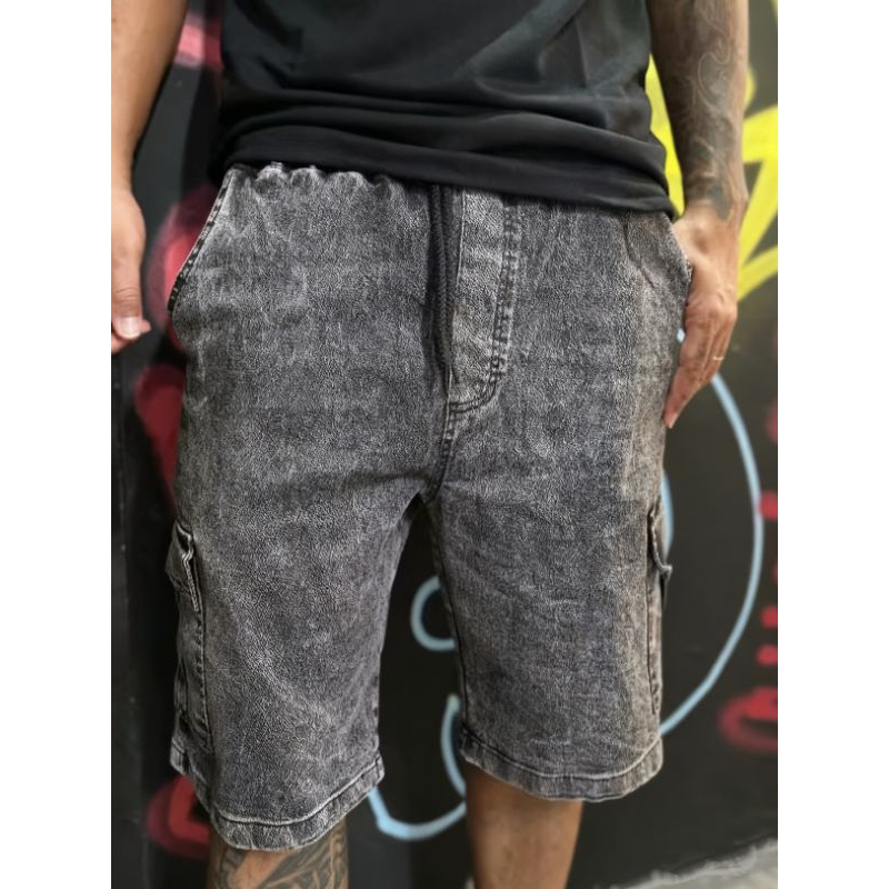 Bermuda Cargo Jeans Estonado Grafite com 6 Bolsos – Streetwear Masculina