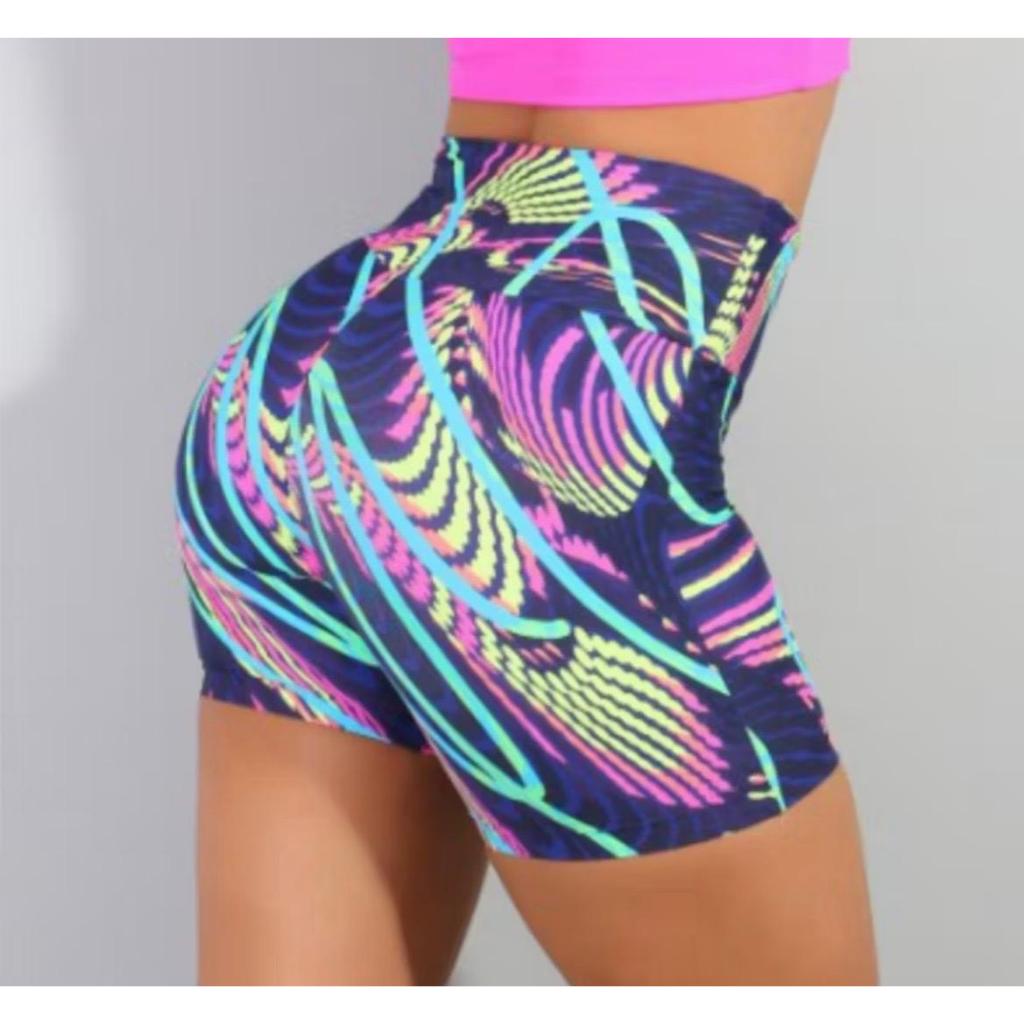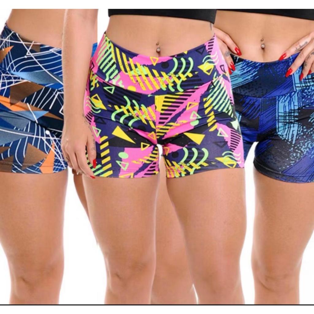 KIT 2 SHORTS DE ACADEMIA SUPLEX ESTAMPADO FEMININA CINTURA ALTA - Estampas Aleatorias