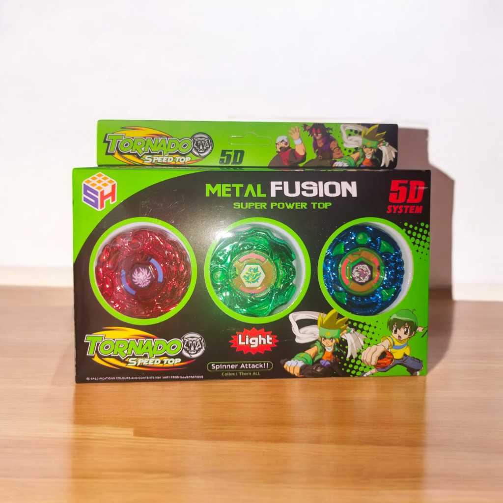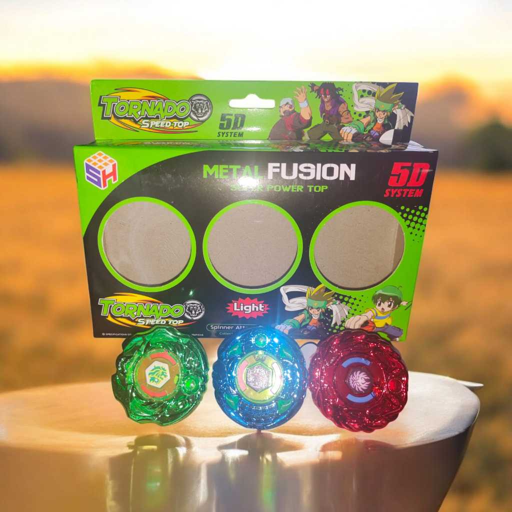 Kit 3 Beyblades Cromadas Metal Fusion Tornado Speed Top com Led