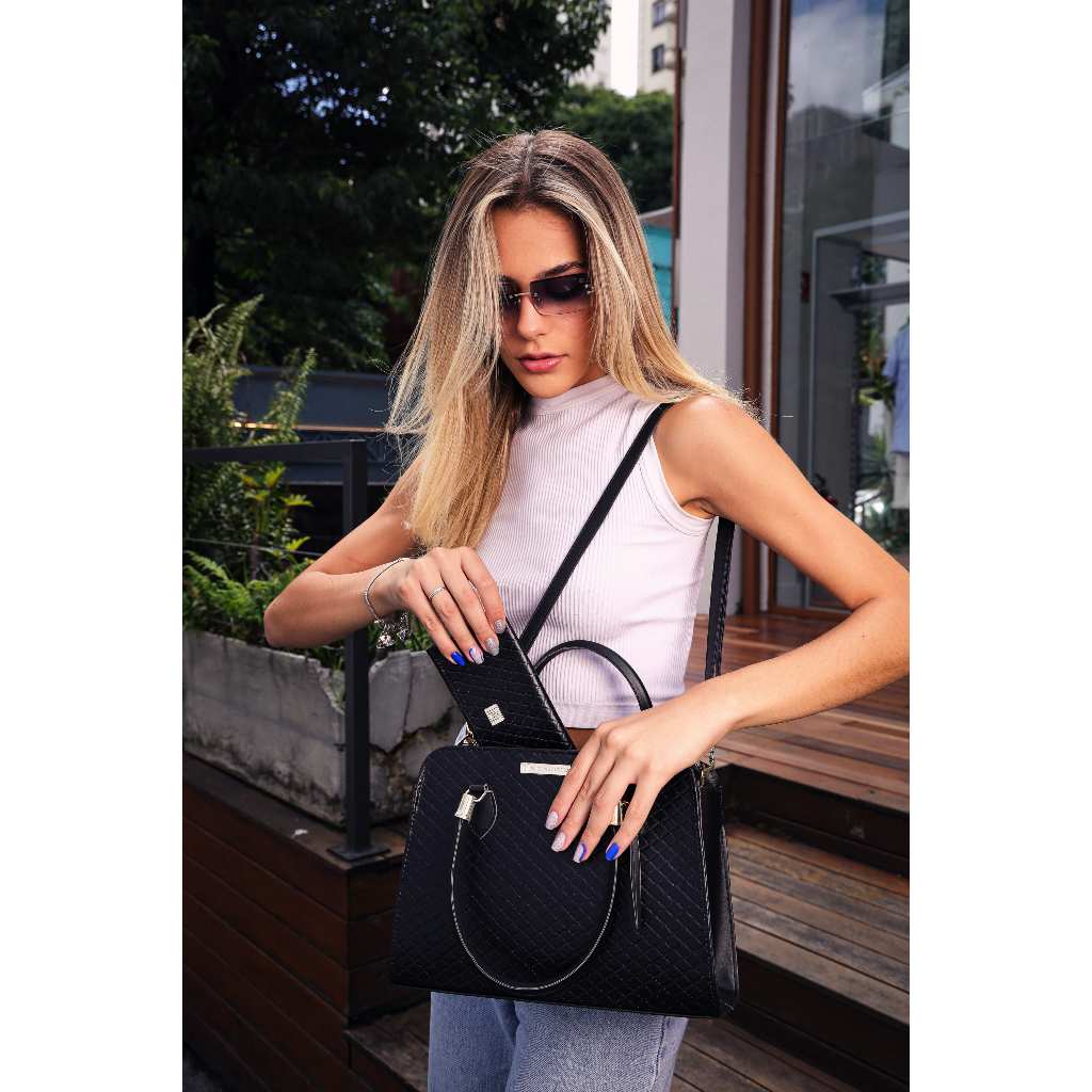 Bolsa Feminina Pasta Casual Tote Pasta De Ombro e Transversal + Carteira Feminina