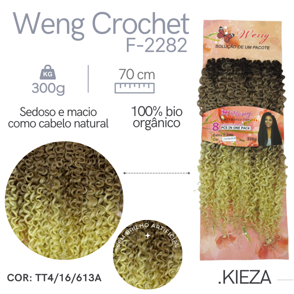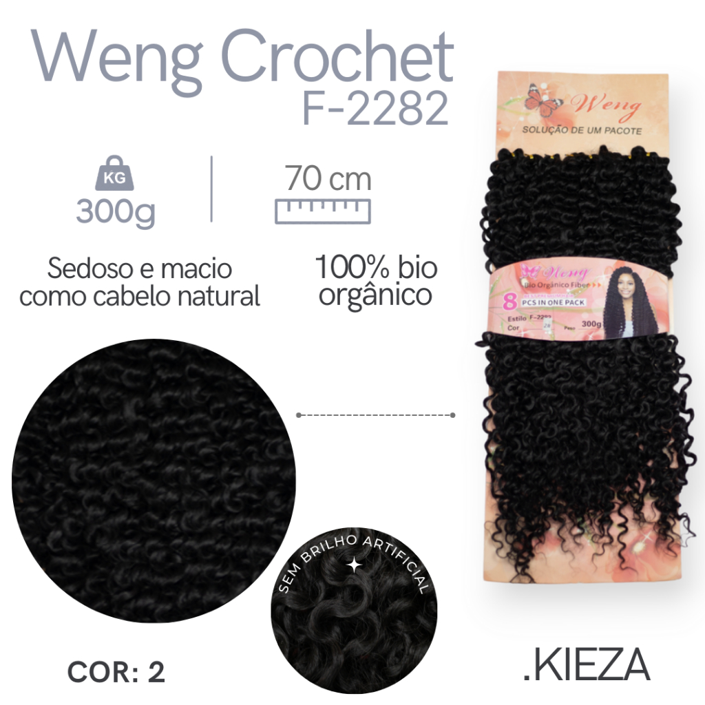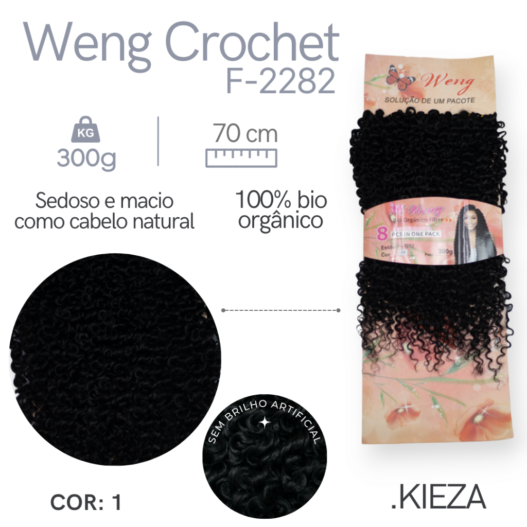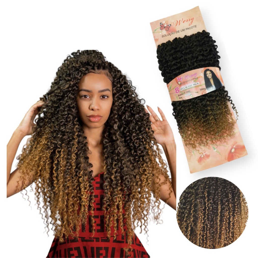 Cabelo Cacheado Fibra Orgânico Para Crochet Braids - Weng 300Gr 70Cm Pronto Para Colocação + BRINDE