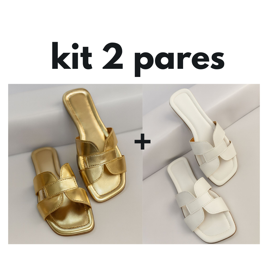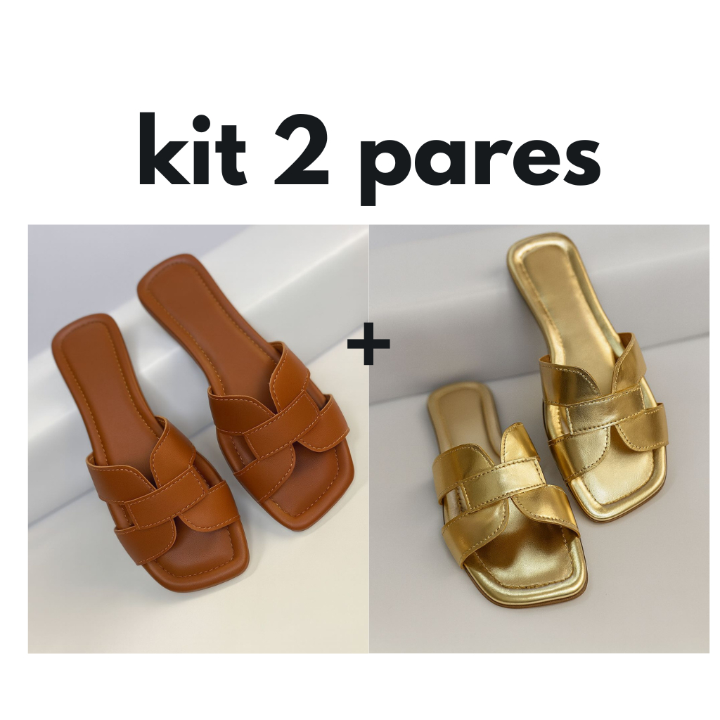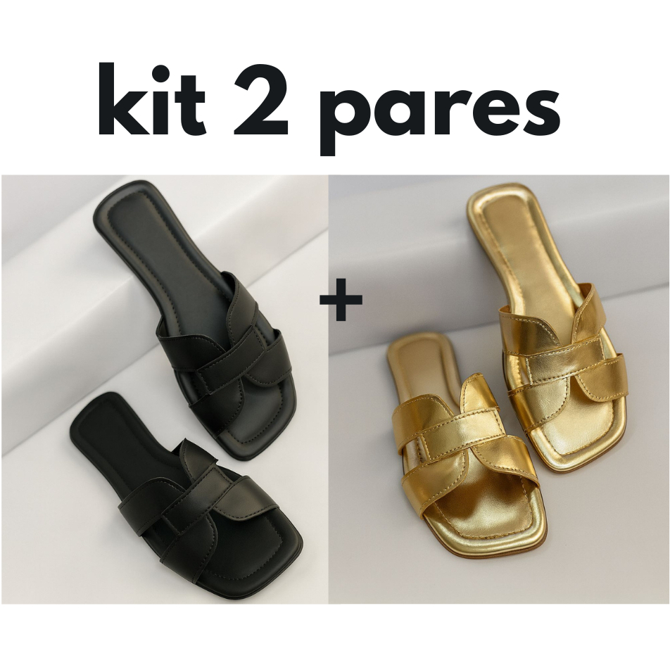 Kit 2 pares Sandália Rasteira Feminina Tendência Moderna