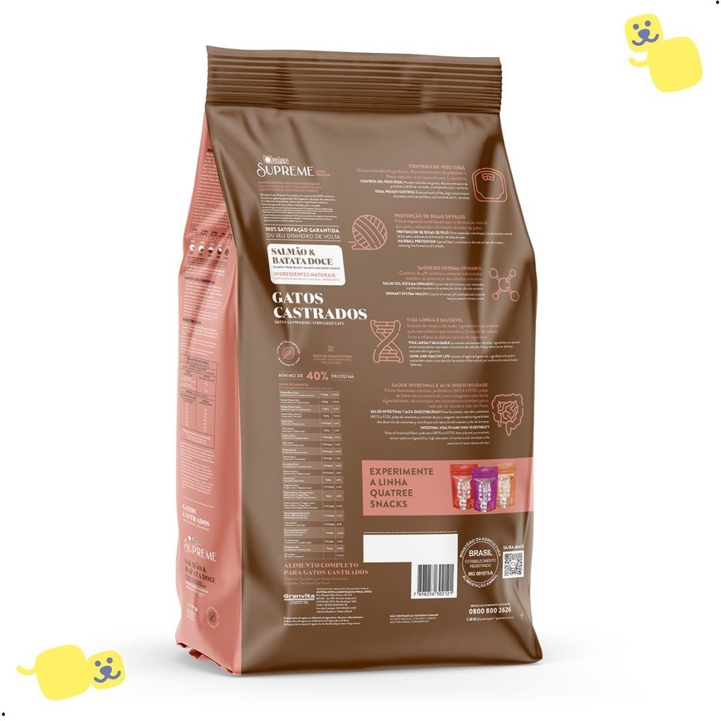 Ração Quatree Supreme Alimento Gatos Castrados Sabor Salmão Batata Doce 3Kg Super Premium Cat