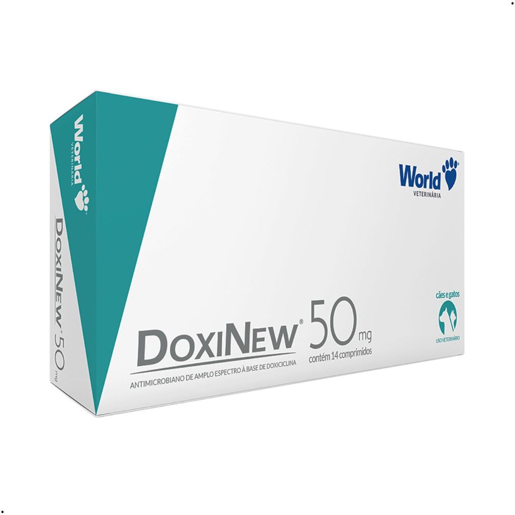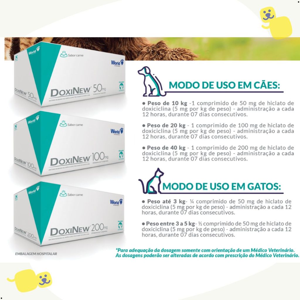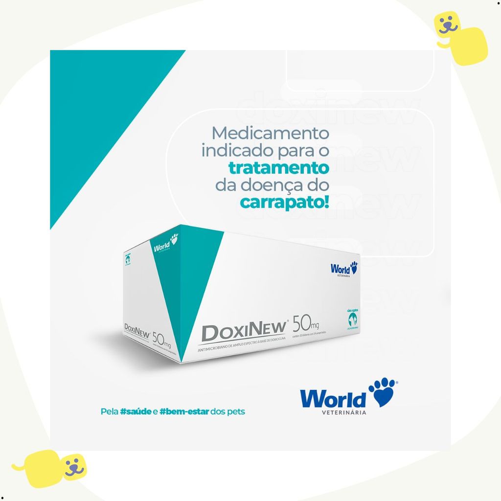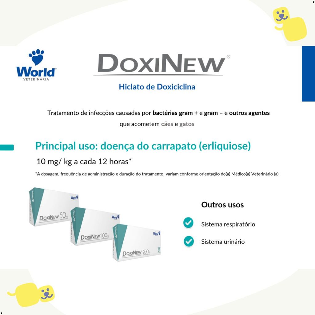 DoxiNew 50mg Doxiciclina Cães Gatos World 14 comp. Doença Carrapato Antibiótico para Cachorro Gato