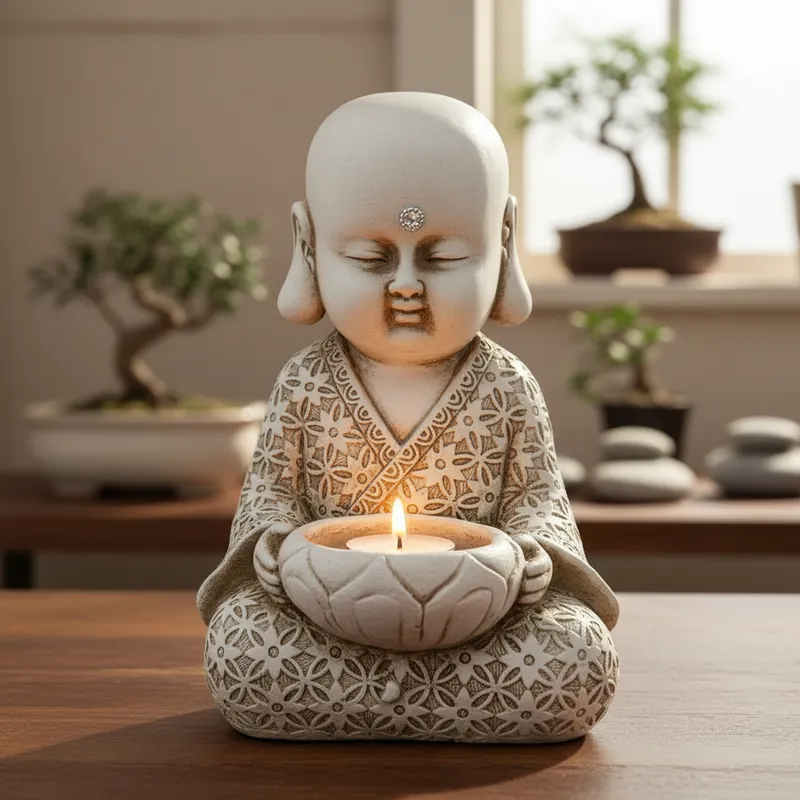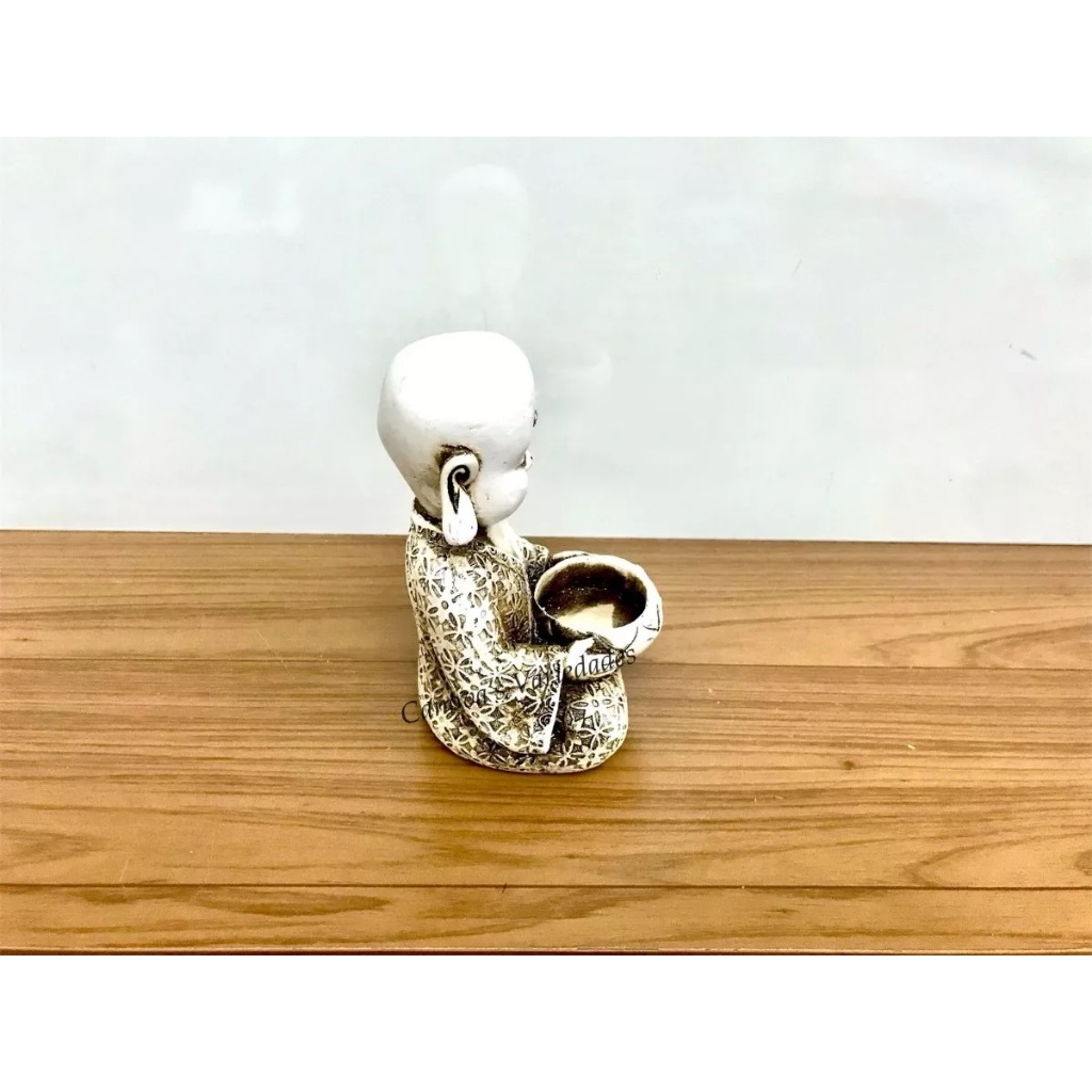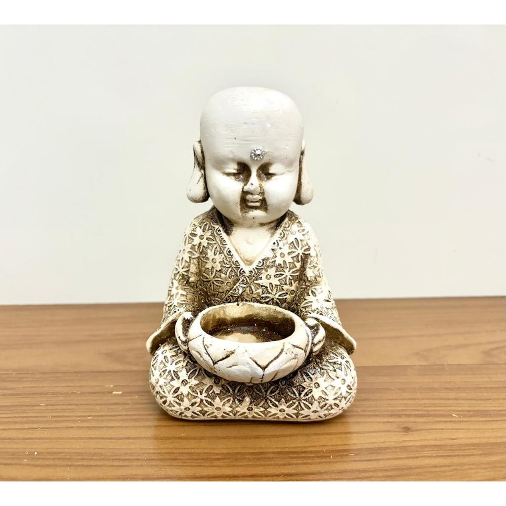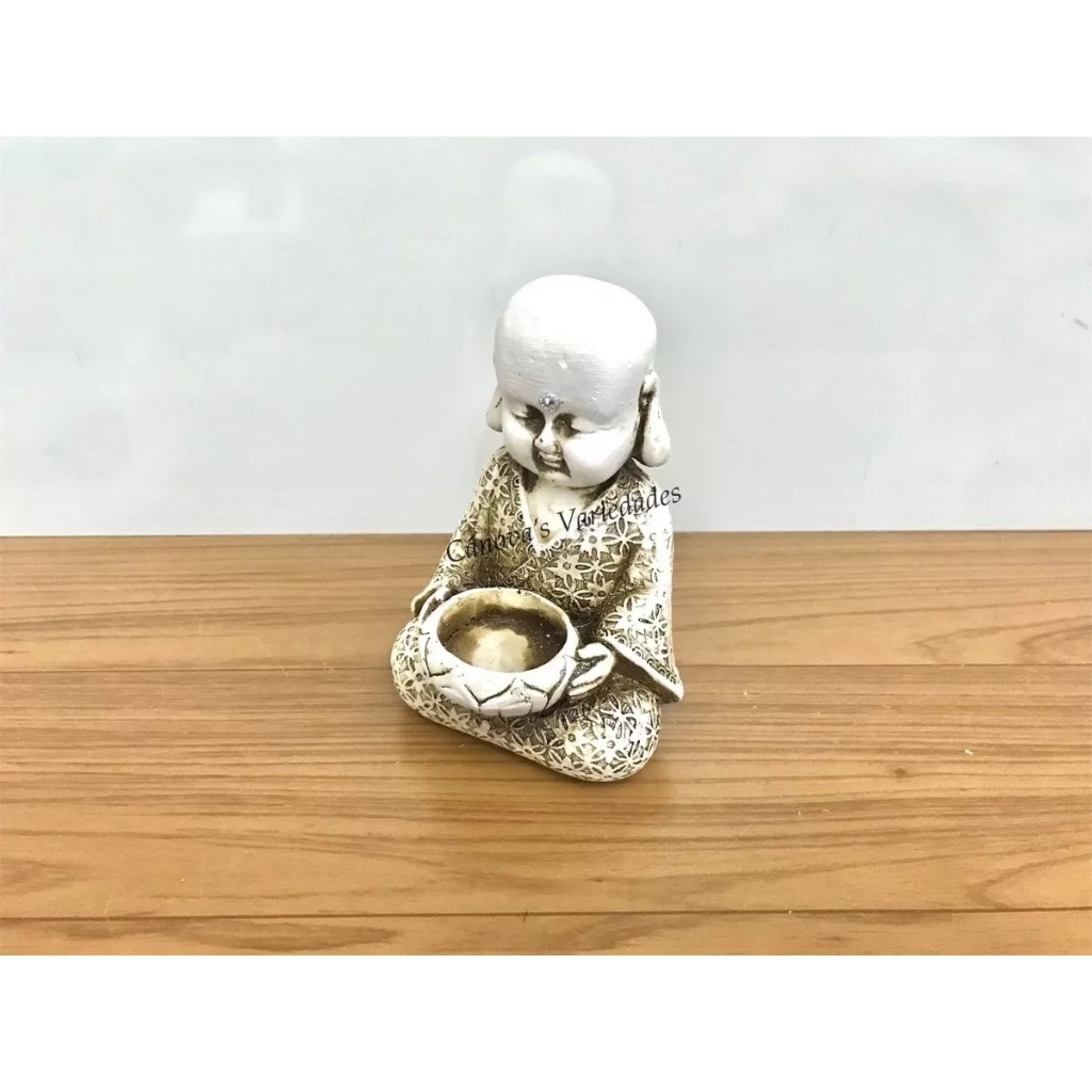 Buda Monge Chines Castiçal Porta Vela Estatua Decoração
