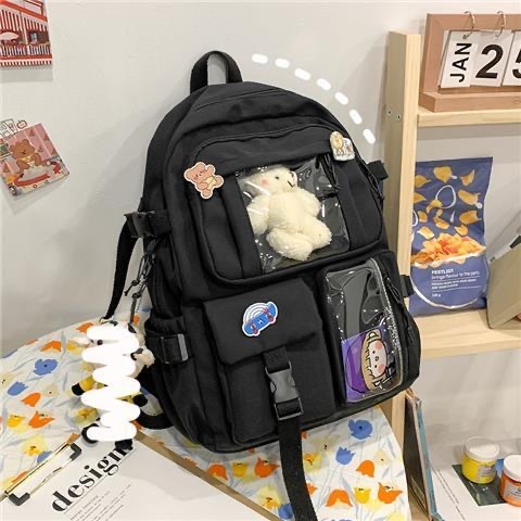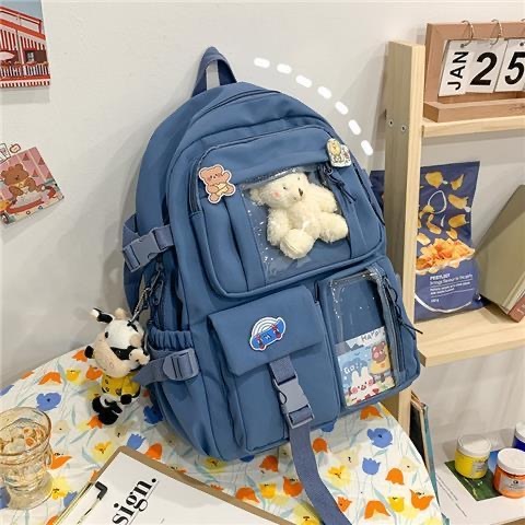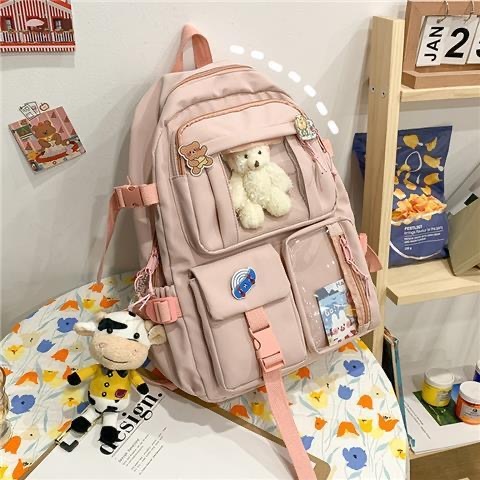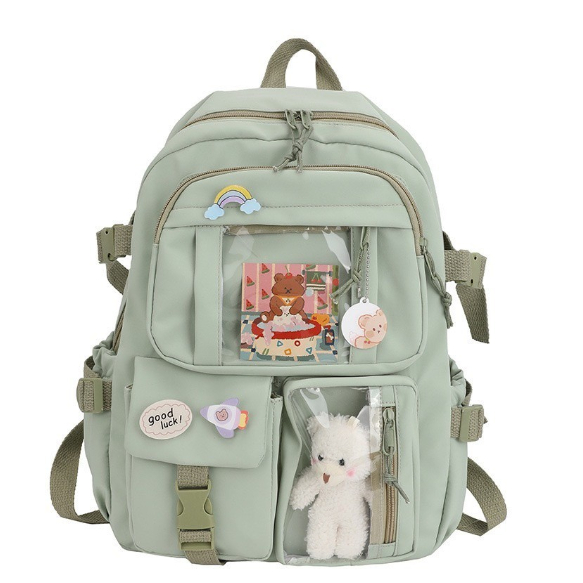 Mochila fofa de desenho animado com zíper e alta capacidade com vários bolsos para mulheres ursinho