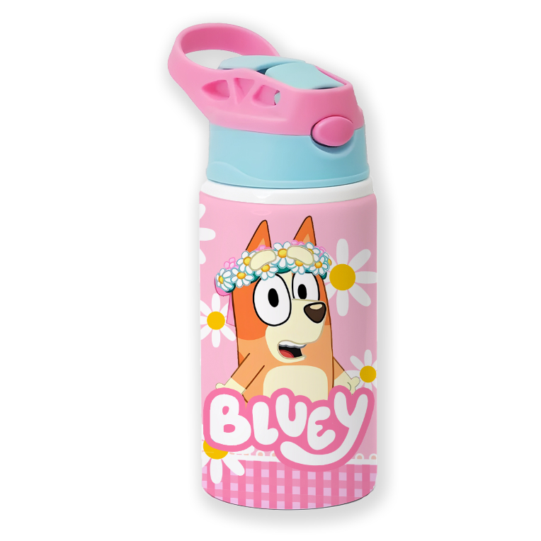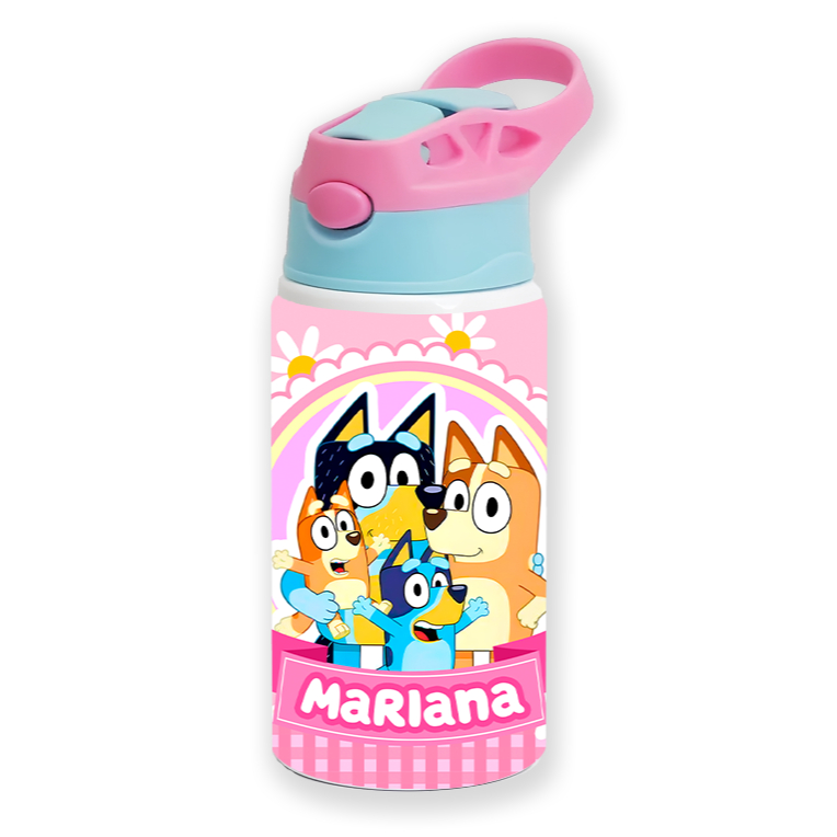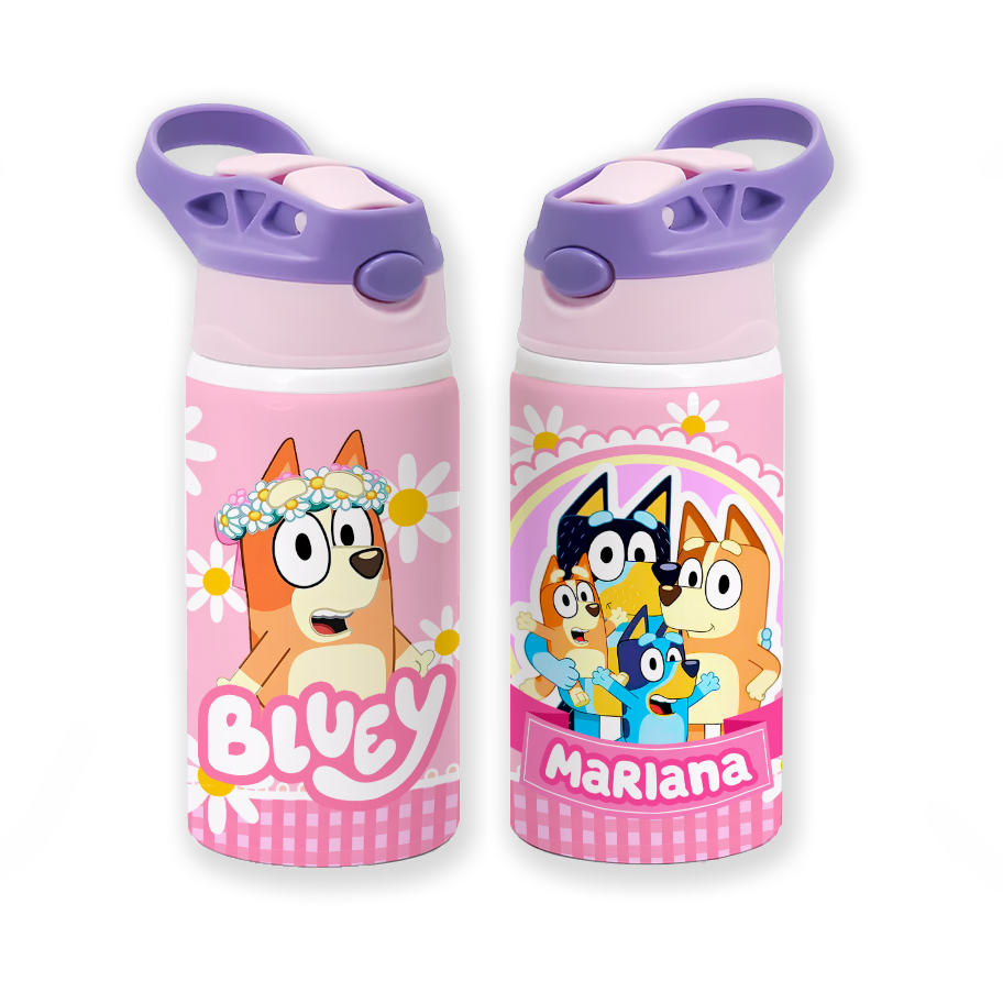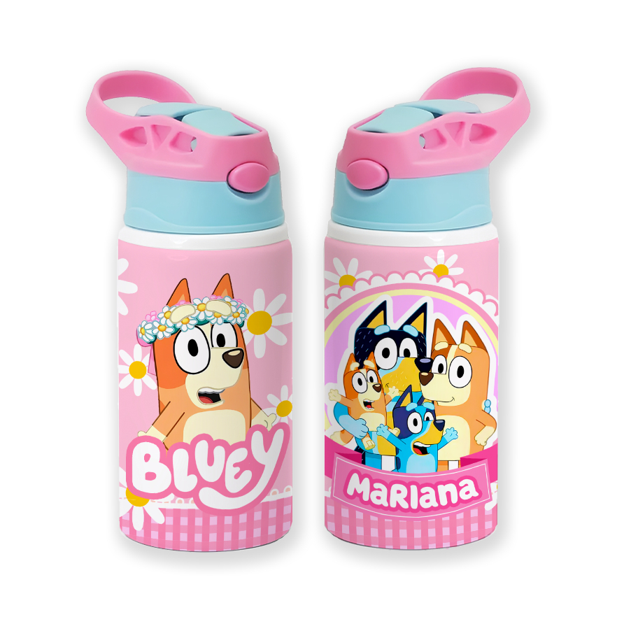 Garrafinha Infantil Menina Bluey Rosa Personalizável Com Nome