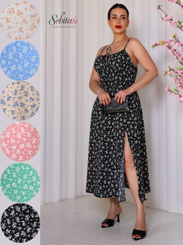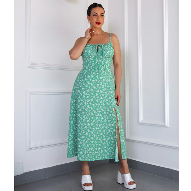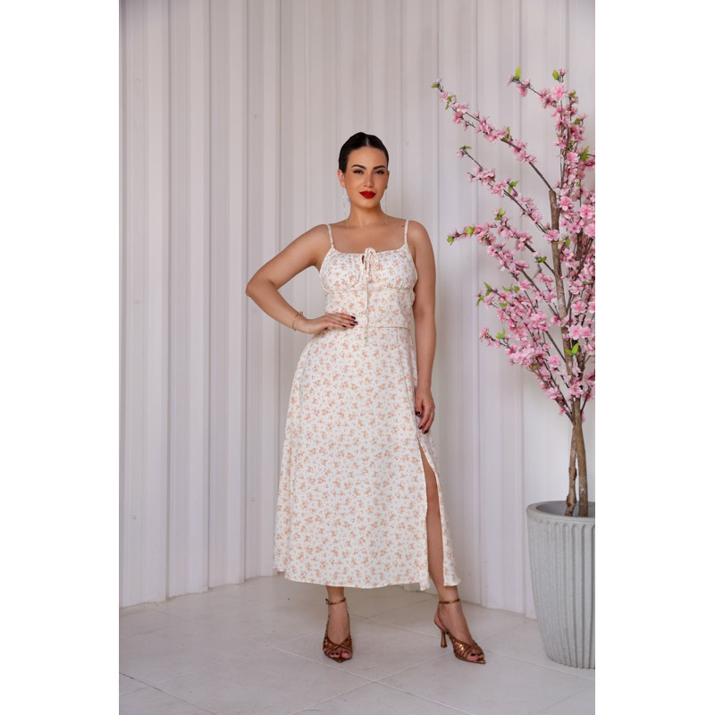 Vestido Midi Floral Romântico Feminino Floral Com Fenda Lateral tem Bojo e Forro Tendencia