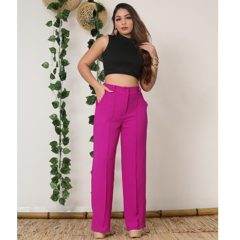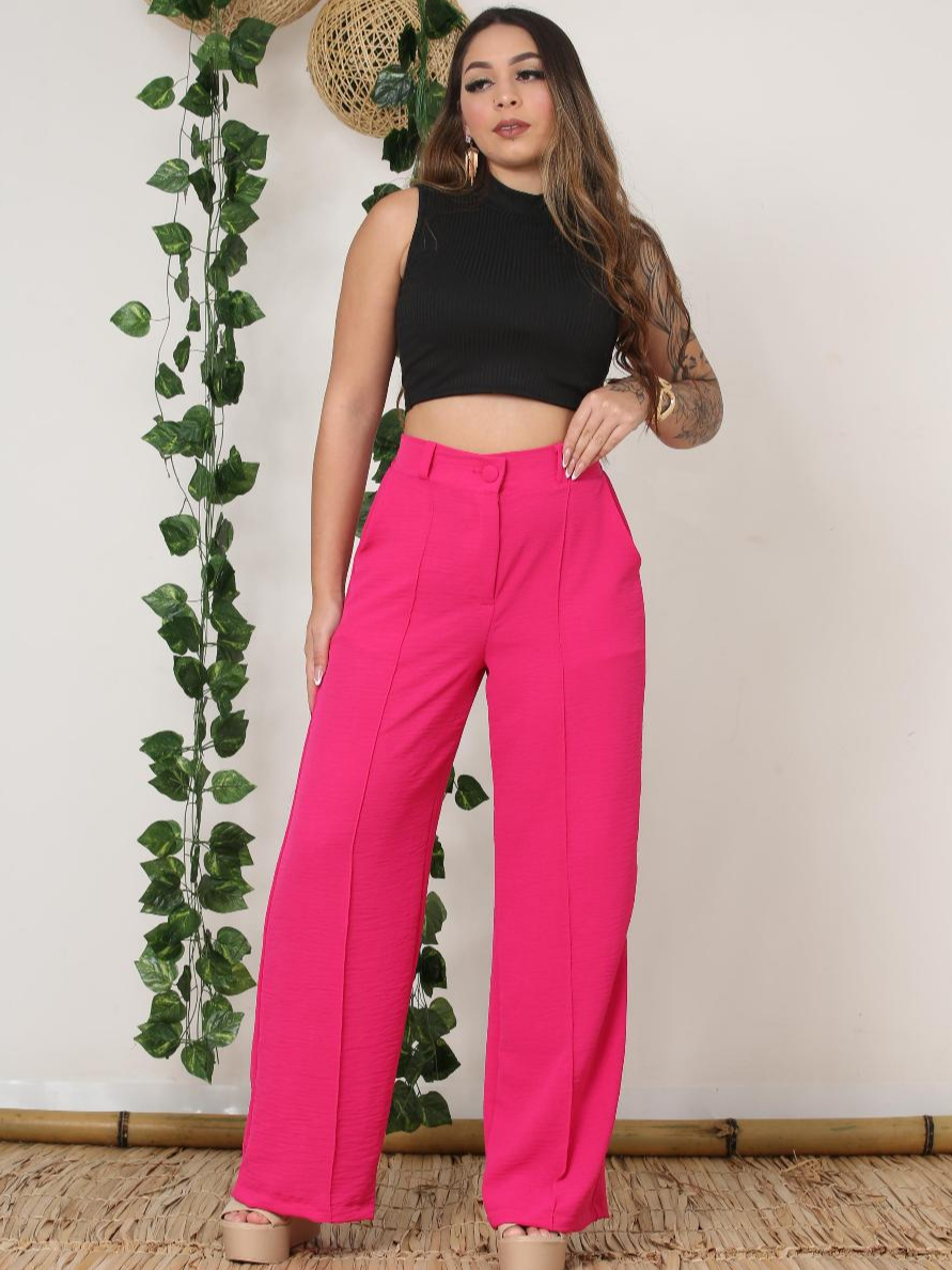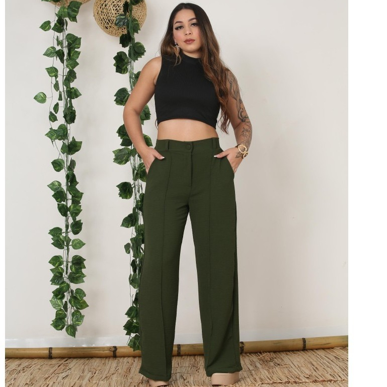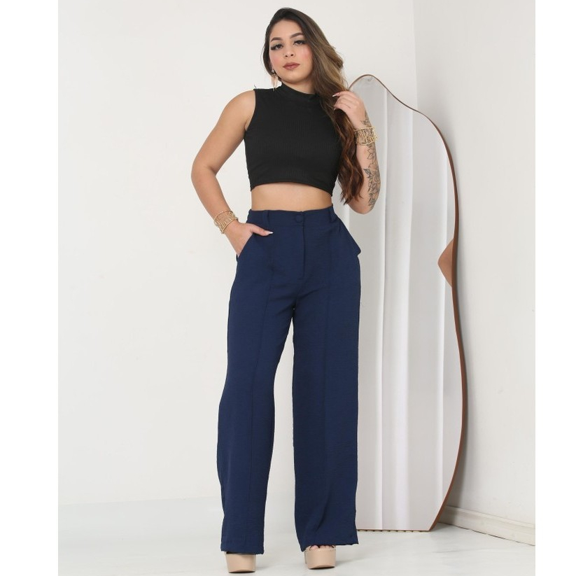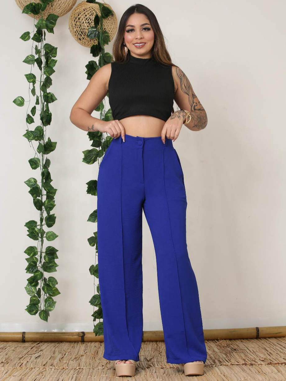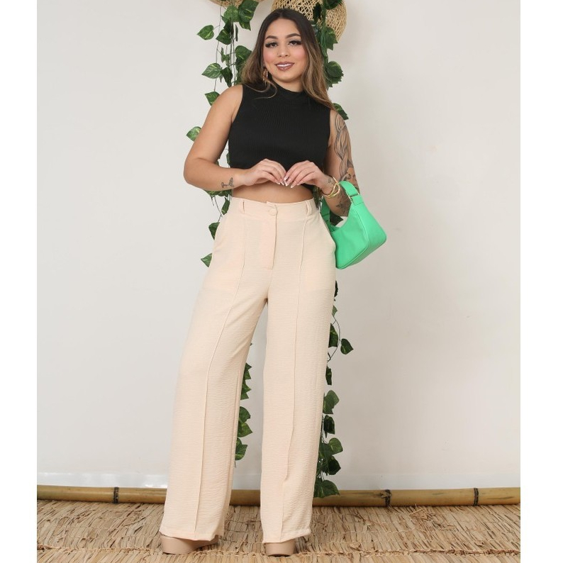 CALÇA FEMININO PANTALONA COM ZÍPER DUNA CINTURA ALTA BOTÃO FORRADO DUNA