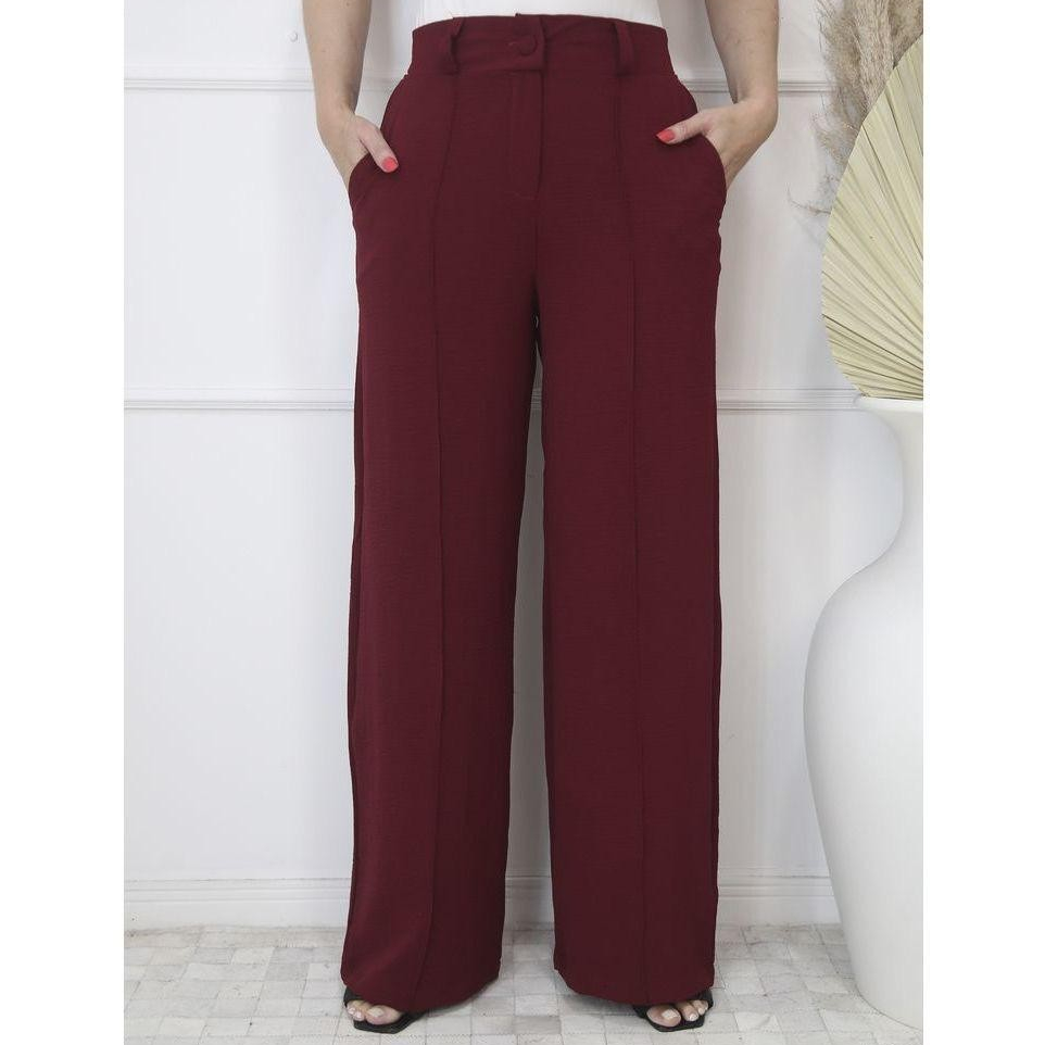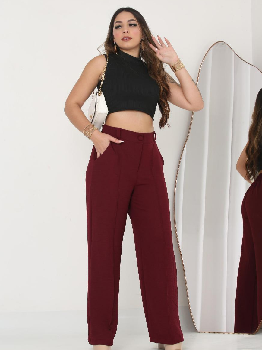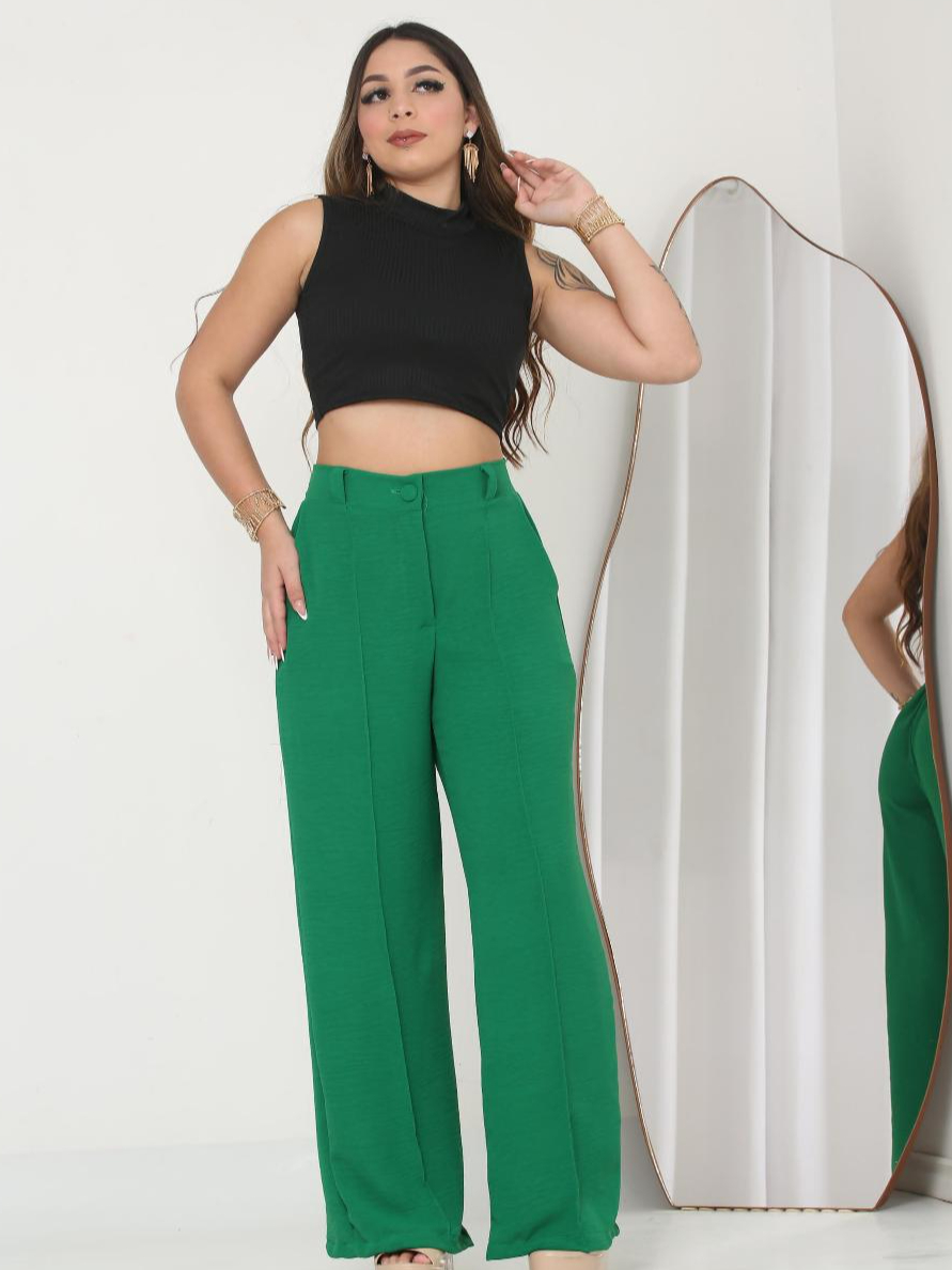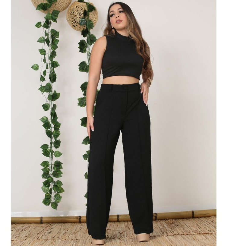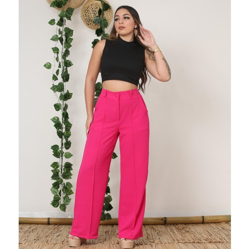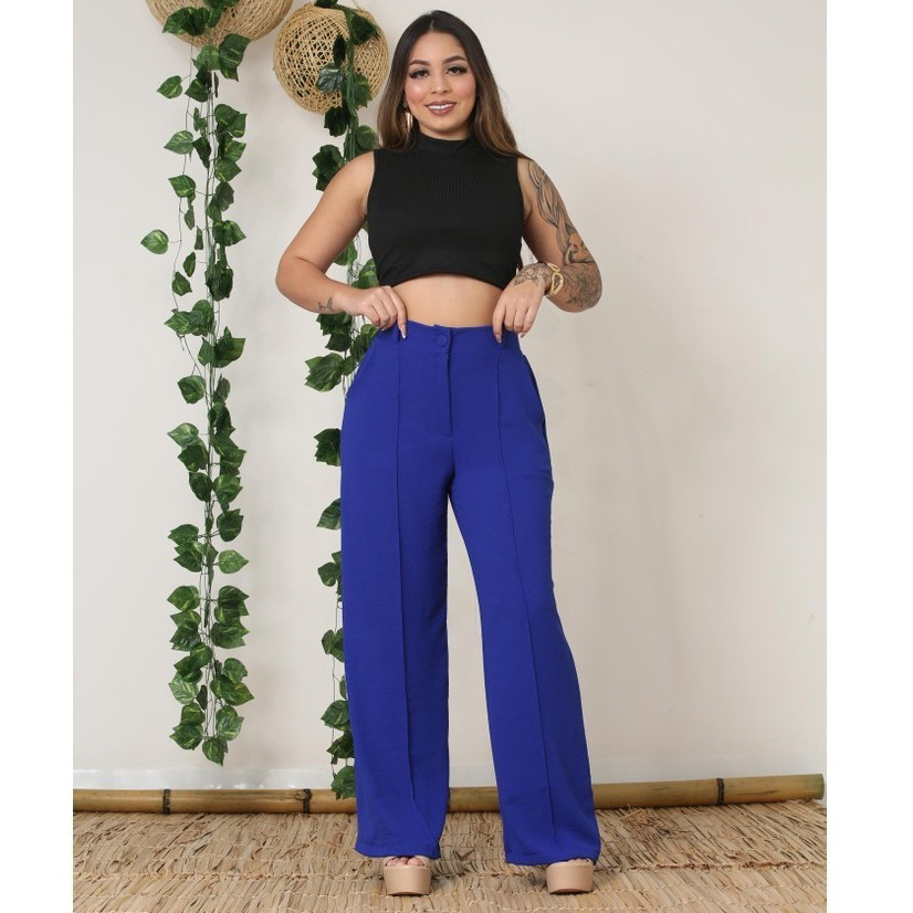 CALÇA FEMININO PANTALONA COM ZÍPER DUNA CINTURA ALTA BOTÃO FORRADO DUNA