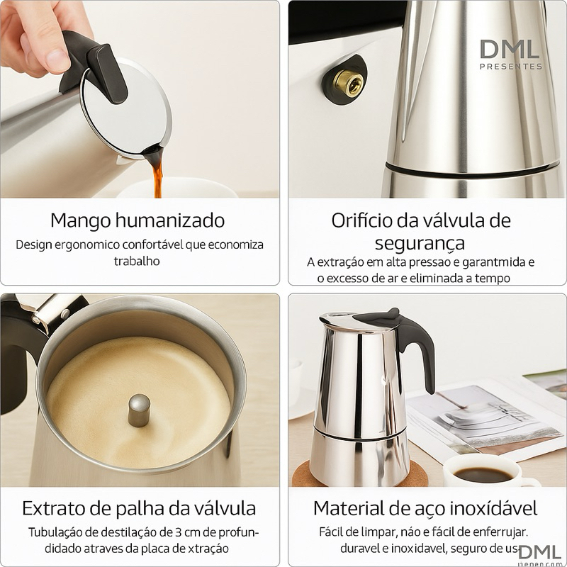 Cafeteira Italiana 12 Xicaras Aço Inoxidável Inox Moka Café Expresso 600ml Grande