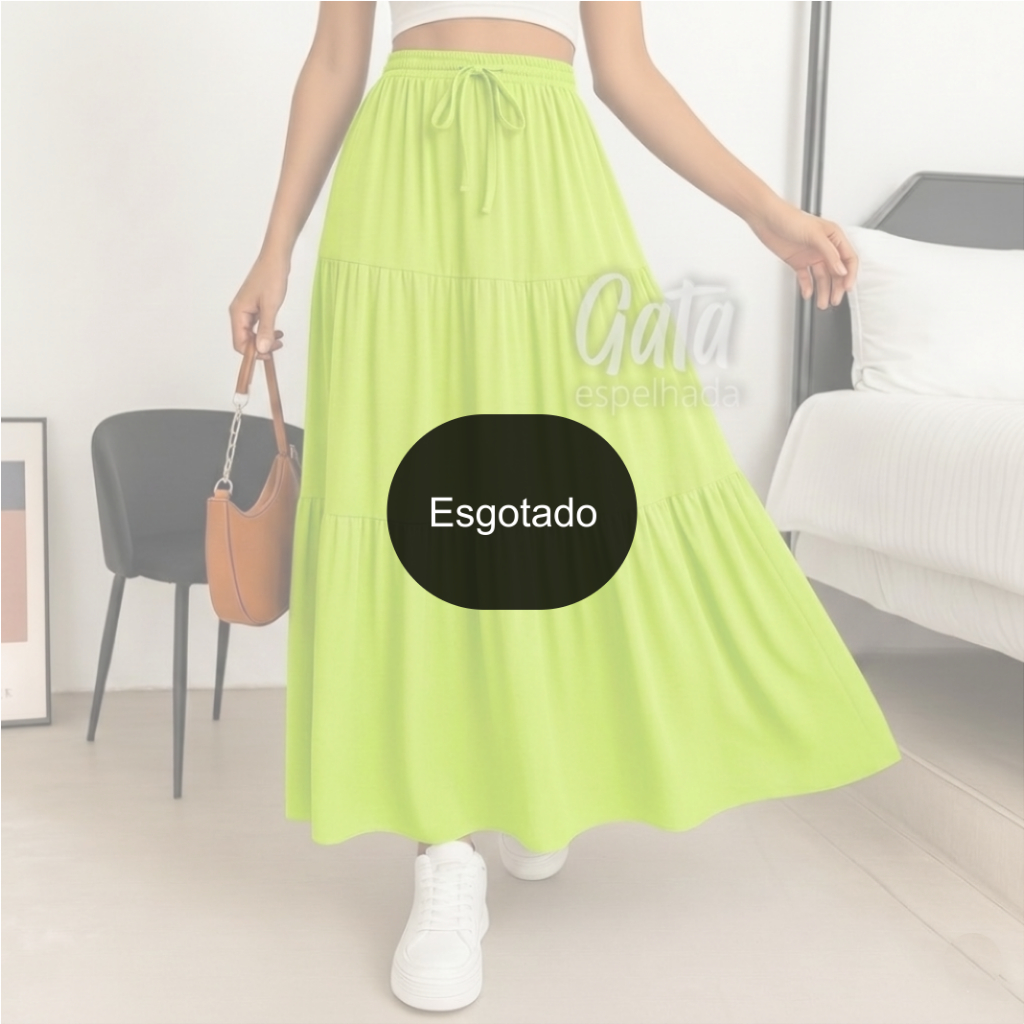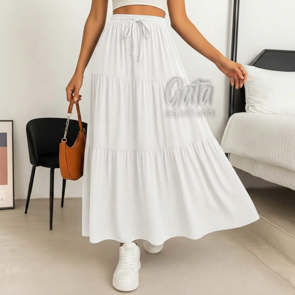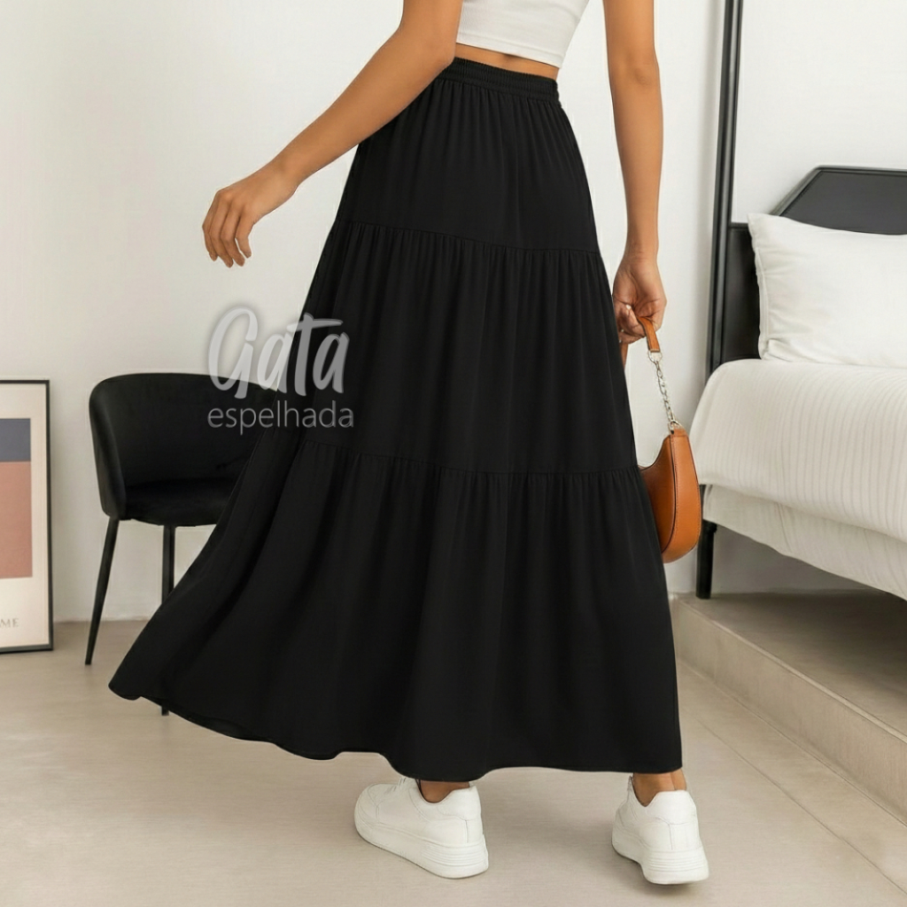 Saia Longa 3 Marias Com Forro e Sem Forro Cintura Alta Elásticos no Cós Moda Gringa e Evangélica Tendência