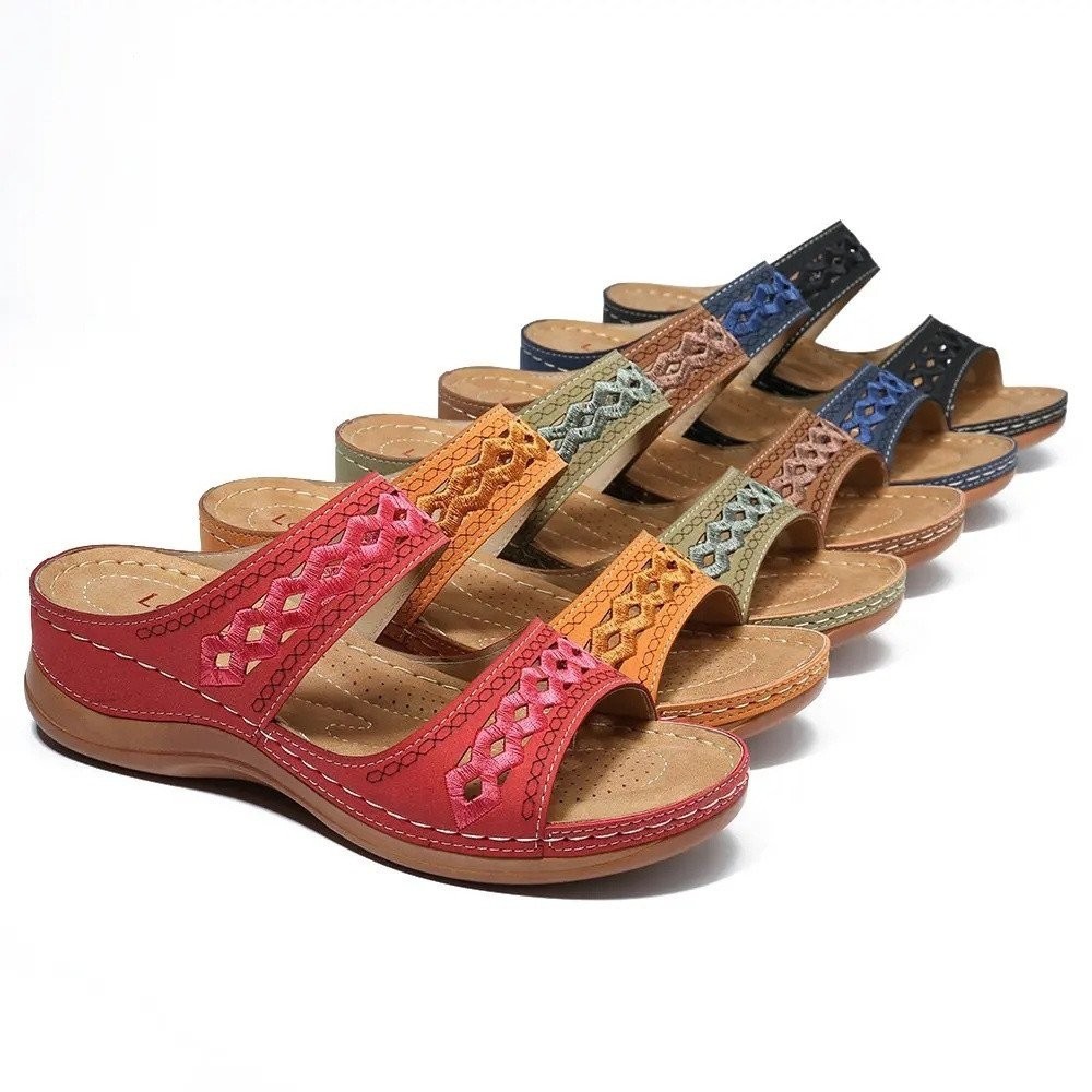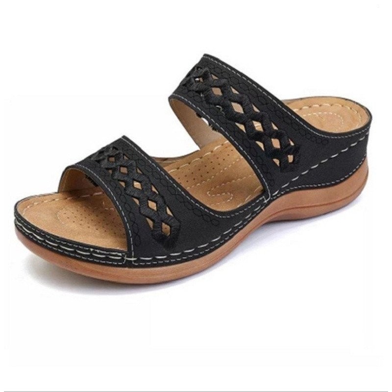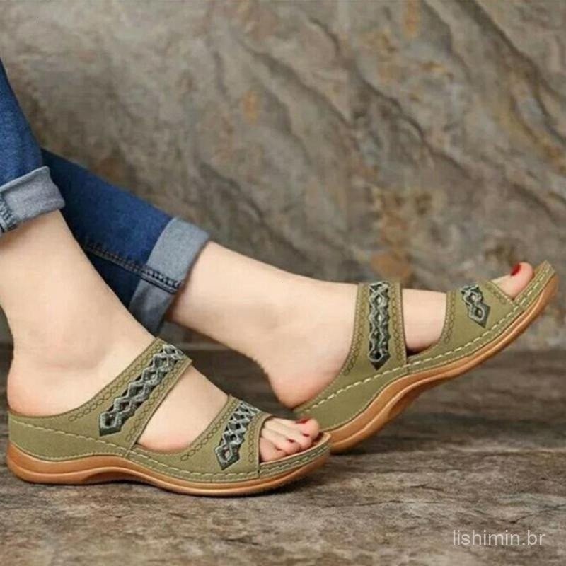 Sandália De Cunha Feminina Com Calcanhar Retrô/Praia Casual