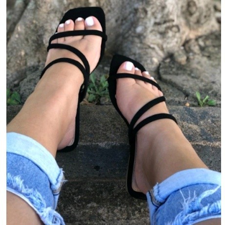 Sandalia Rasteirinha Bico Quadrado Em Zig-Zag Tiras De Cordinha Feminina