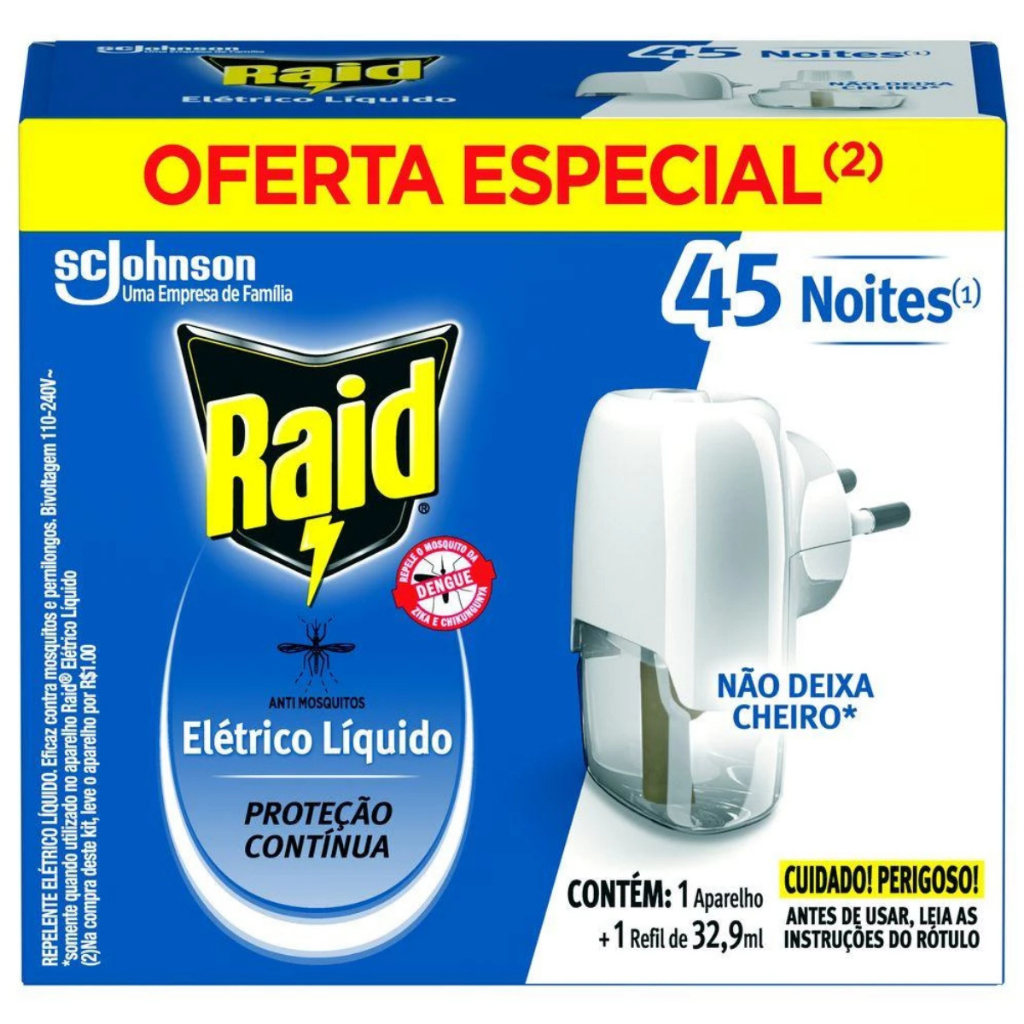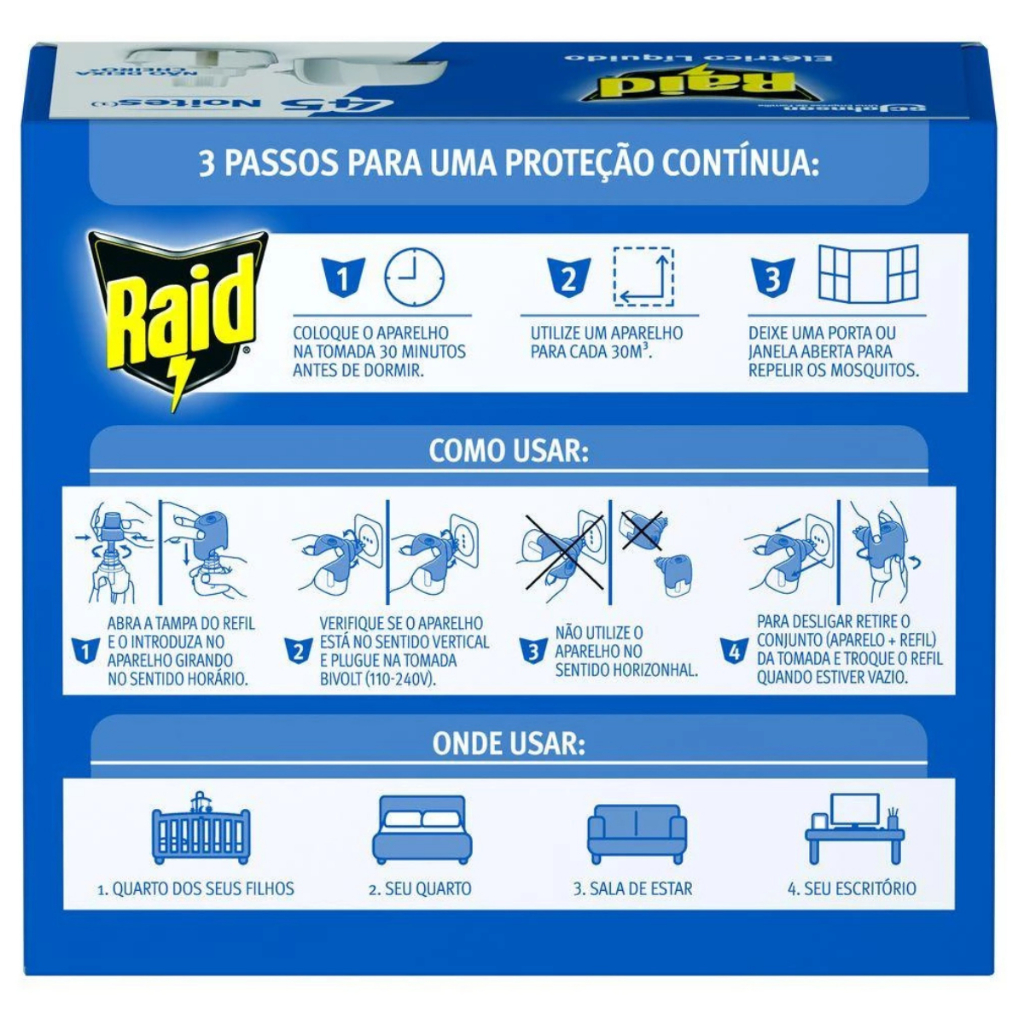 Kit 6 Aparelho Repelente Raid Elétrico + 6 Refil 45 Noites 32,9ml