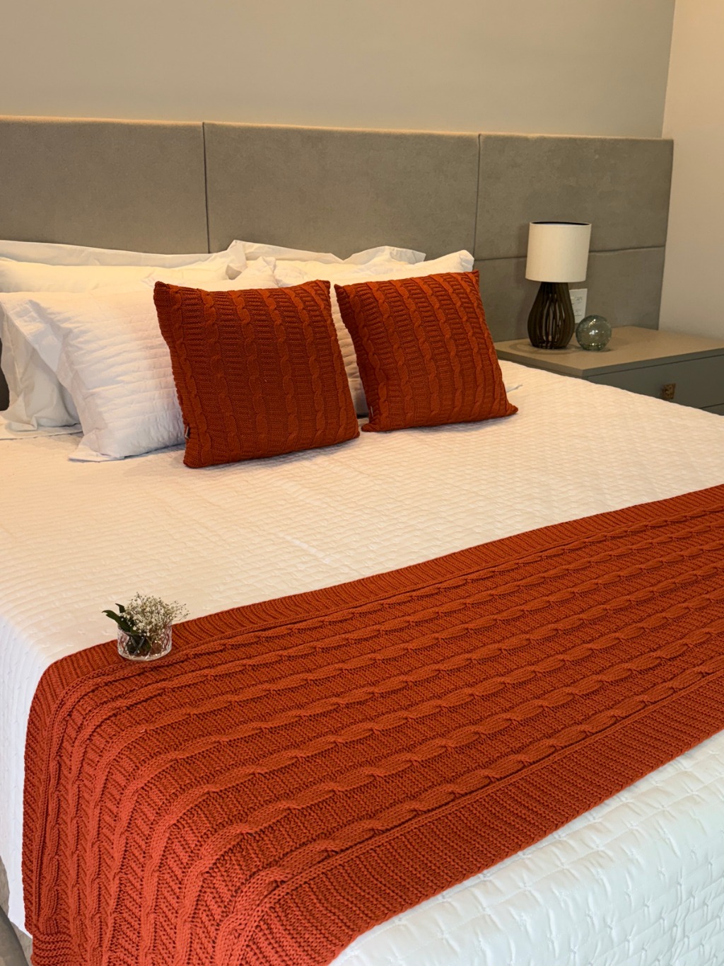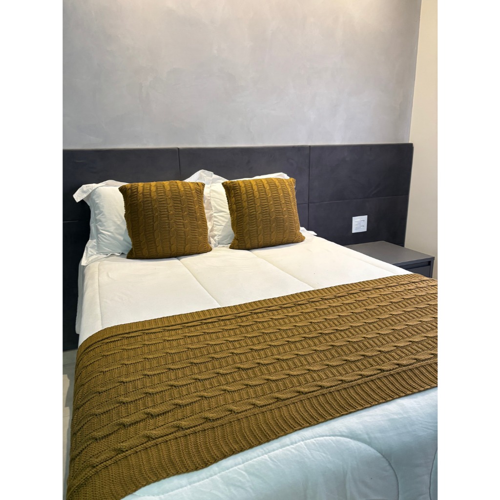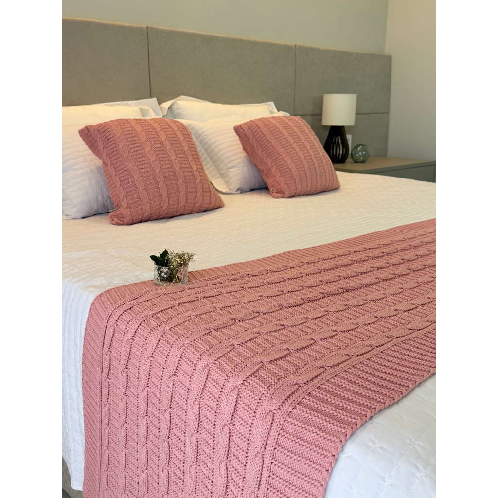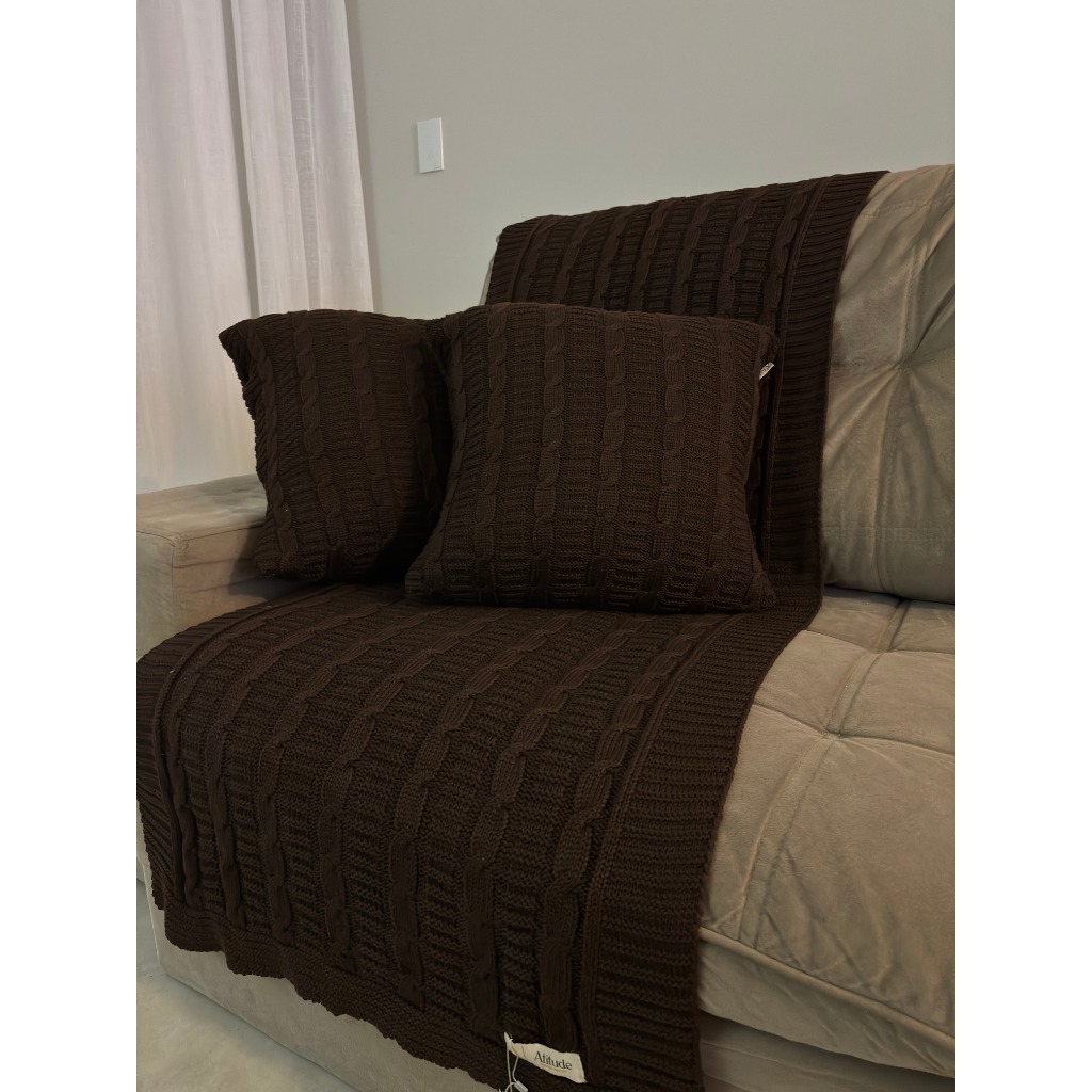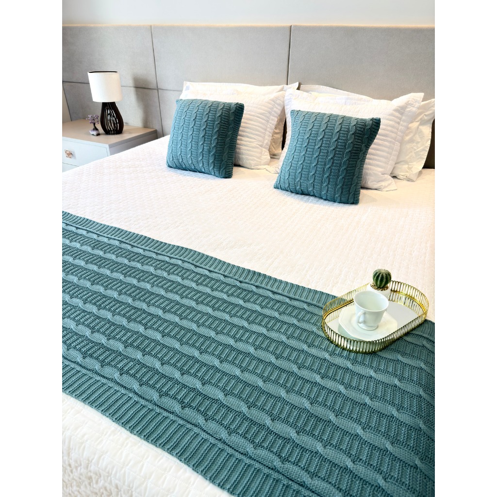 Kit Manta Peseira de Tricot + 2 Capas Almofada Para Cama e Sofá Casal Queen e King Decoração Luxo FI