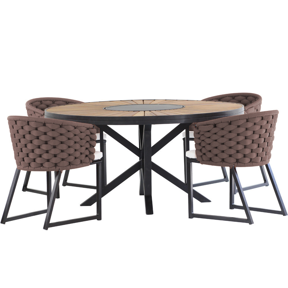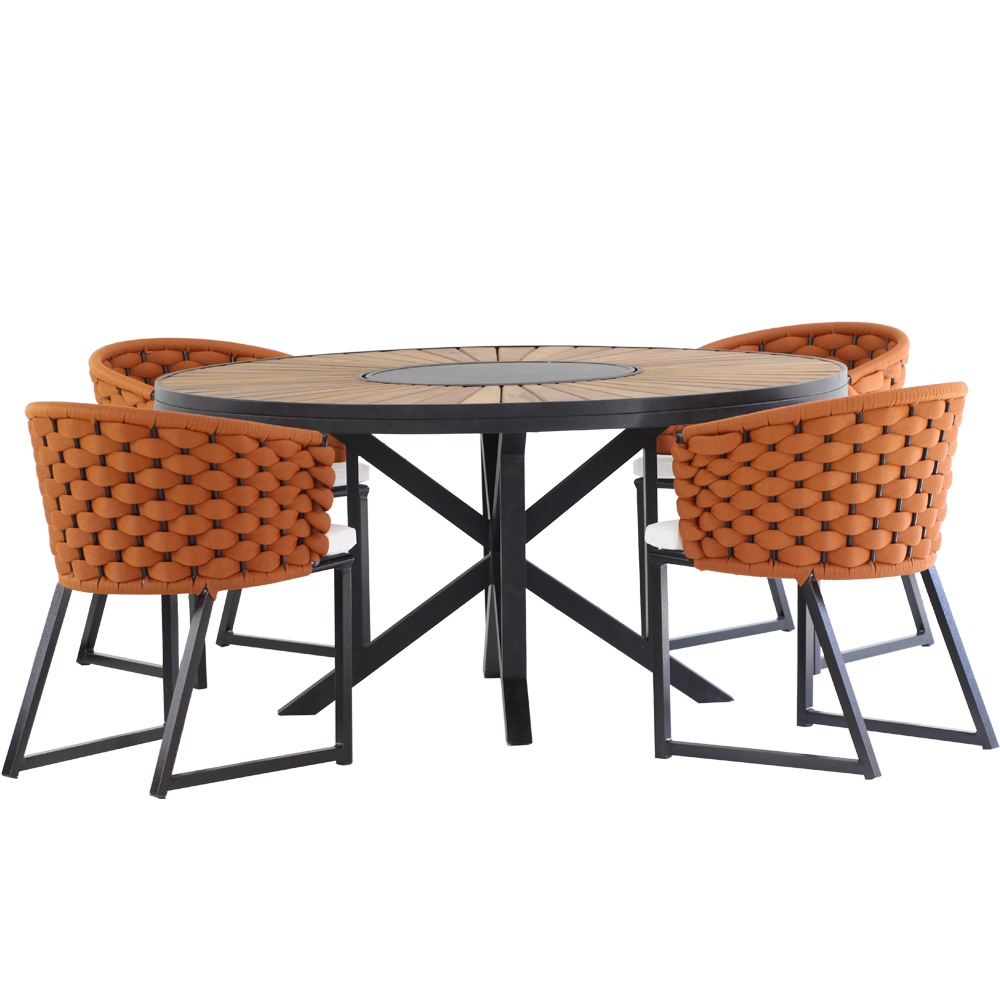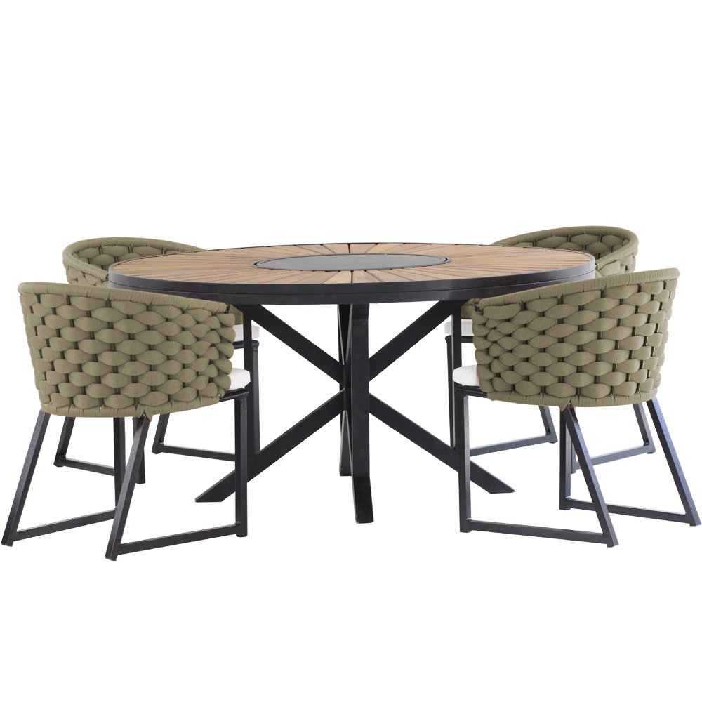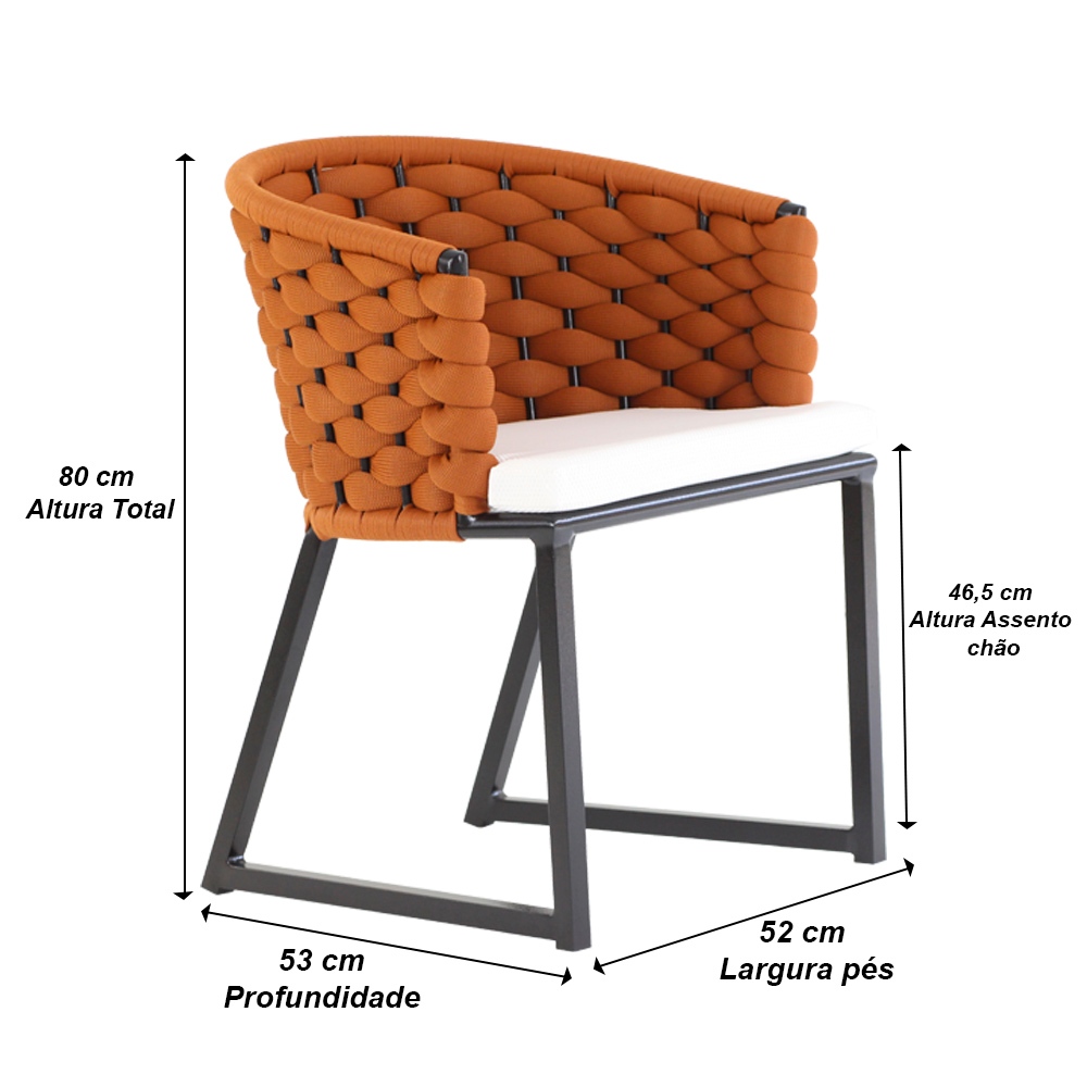 Kit 4 Cadeira Bali Alumínio em Tricô Náutico e Mesa Trama Original