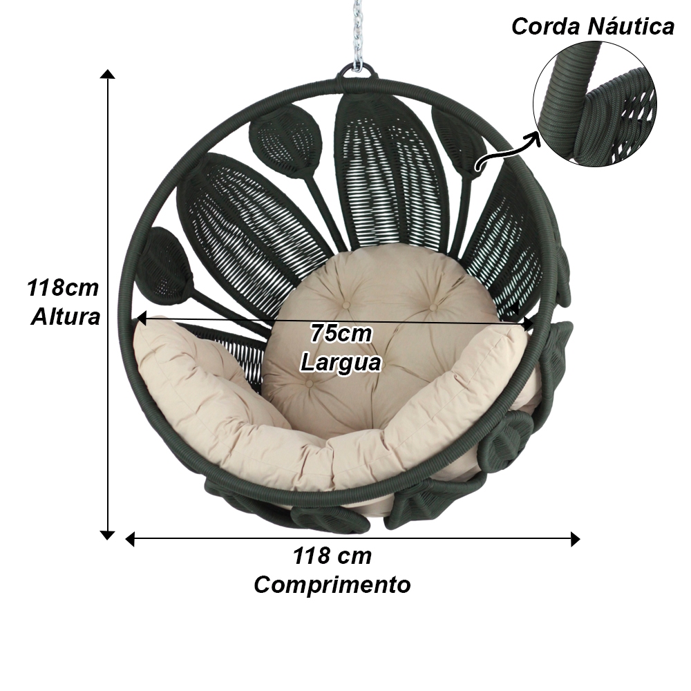 Balanço Petala Corda Náutica Alumínio Jardim Área Varanda Trama Original