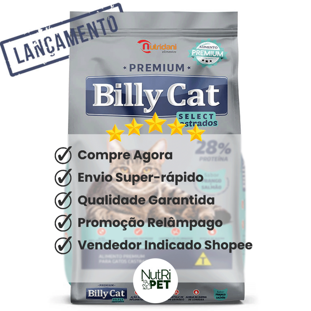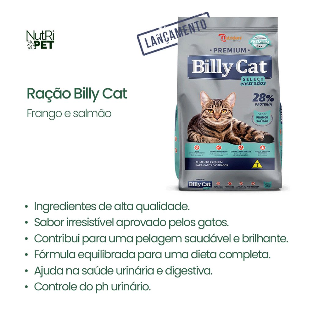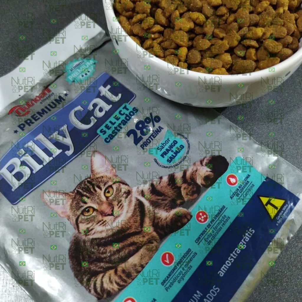 KIT 3 Ração Billy Cat Castrados Frango e Salmão 1kg