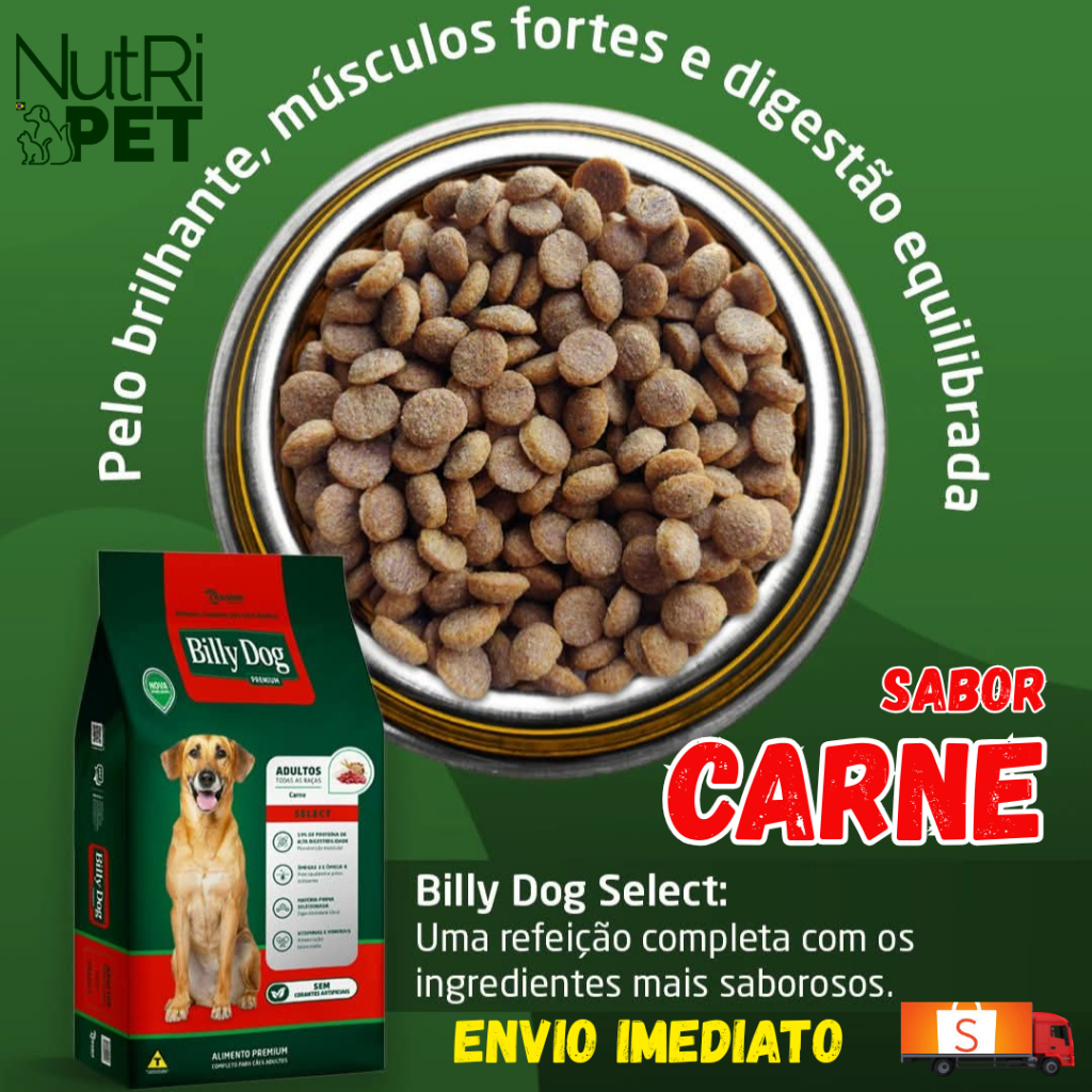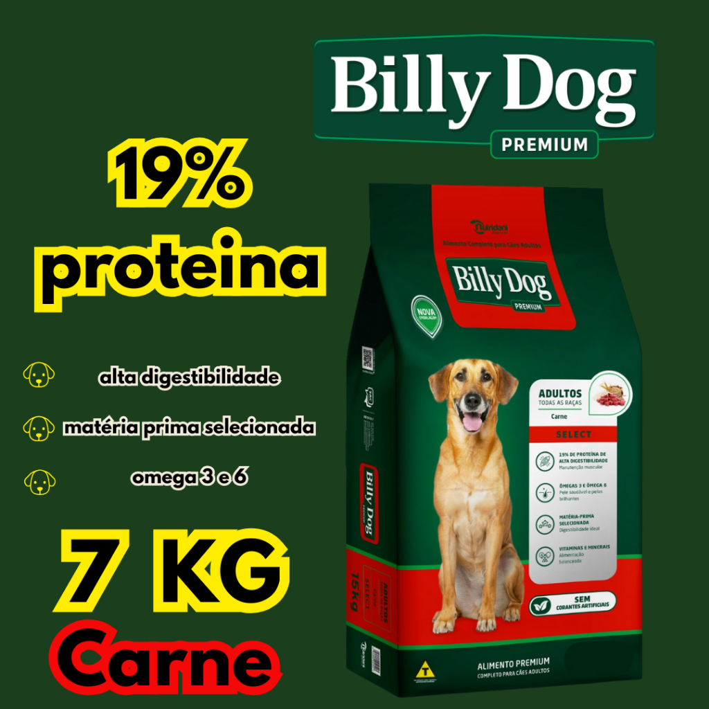 Ração Billy Dog Adultos Select Carne 7kg 19% Proteina Envio Rápido