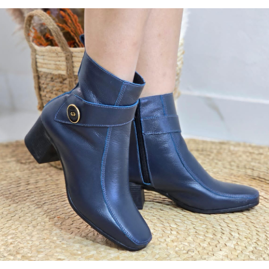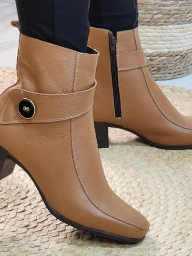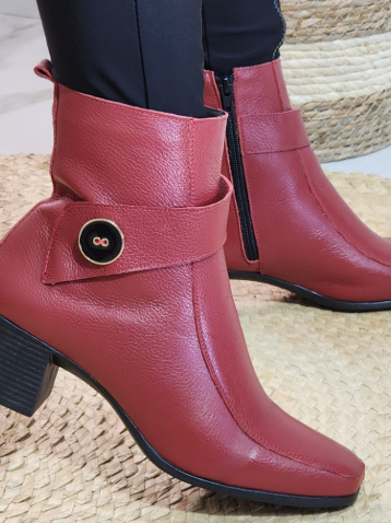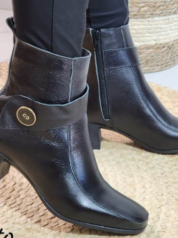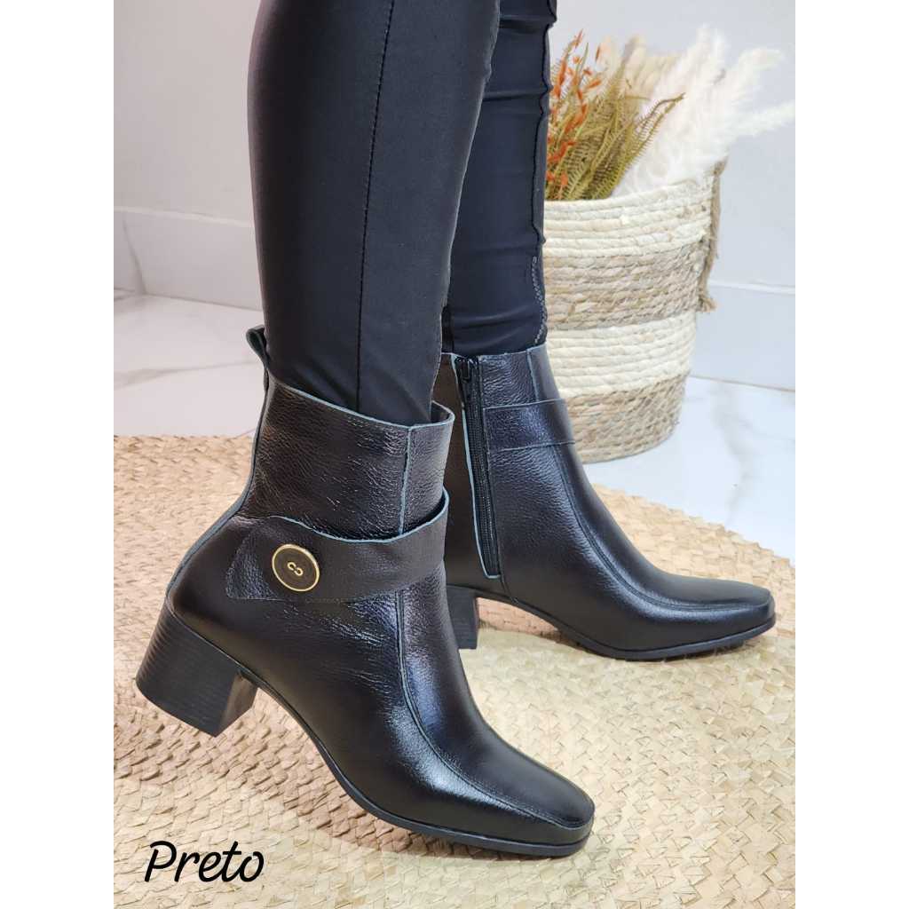 BOTA EM COURO LEGÍTIMO GLAMUROSA LUXUOSA DA MODA COM UM LINDO BOTÃO NA LATERAL BICO QUADRADO SUPER CONFORTÁVEL