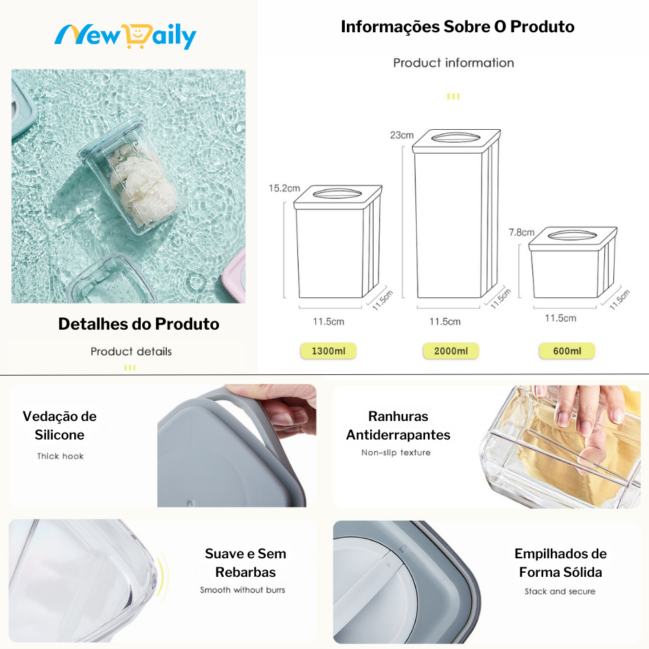 Frascos de Armazenamento Para Hermético doméstico, empilháveis com tampa giratória à prova de vazamento. BC-83/84/85