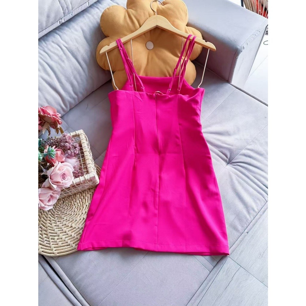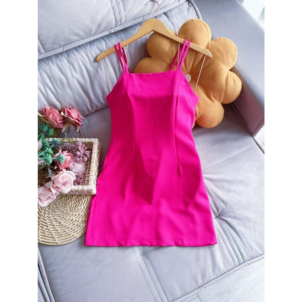 Vestido curto com dois alça alfaiataria moda feminina