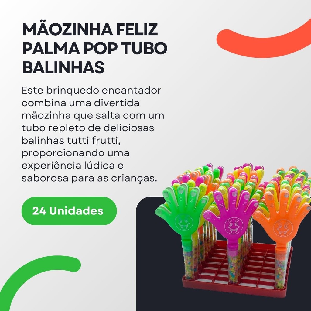 Mãozinha Feliz Pop - Tubo Balinhas Tutti Frutti - com 24 Uni