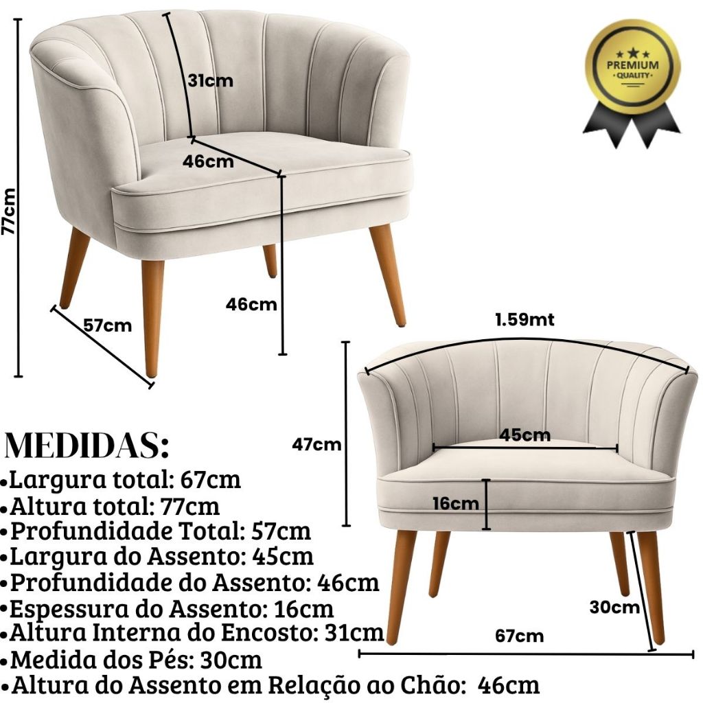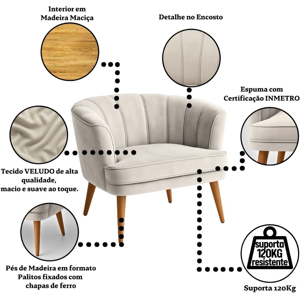 Poltrona para Sala de Estar Estofada Decorativa Moderna Pés de Madeira Reforçado Ergonômica