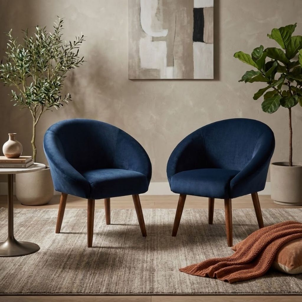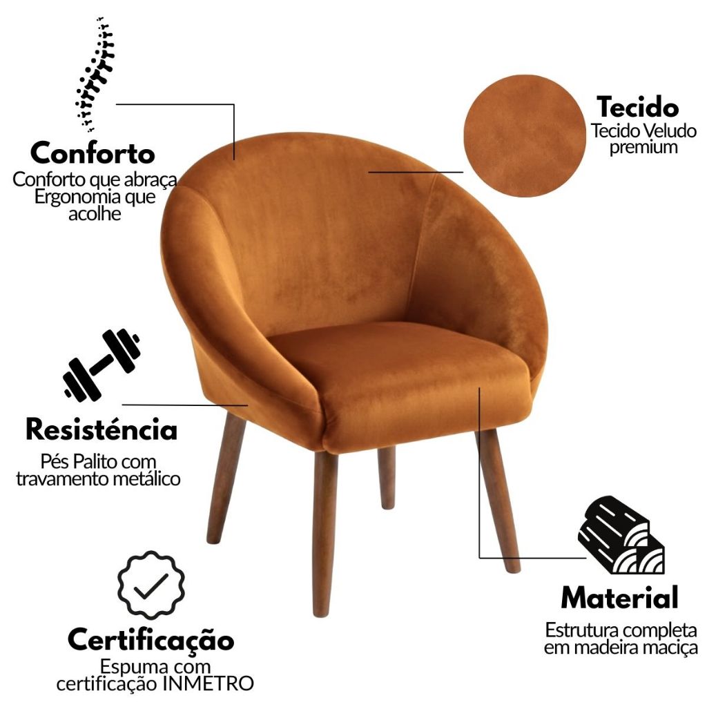 Jogo 2 Poltronas Aconchegante Tecido Veludo para Sala de Estar Pés Palito Reforçado