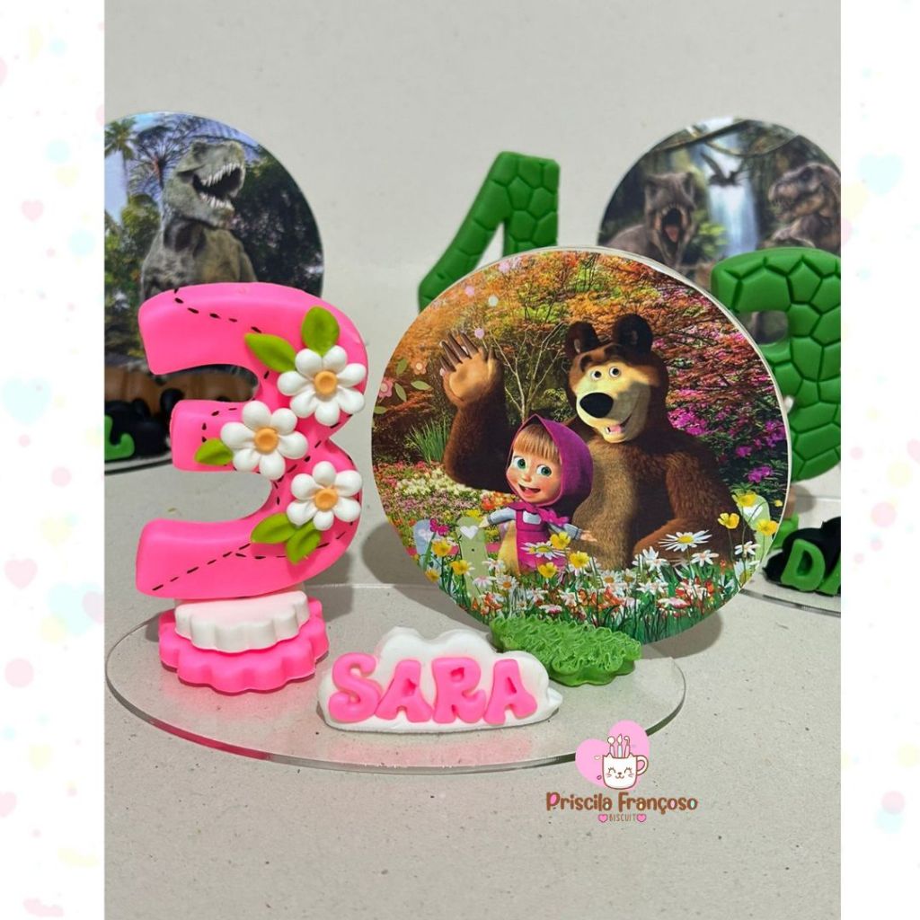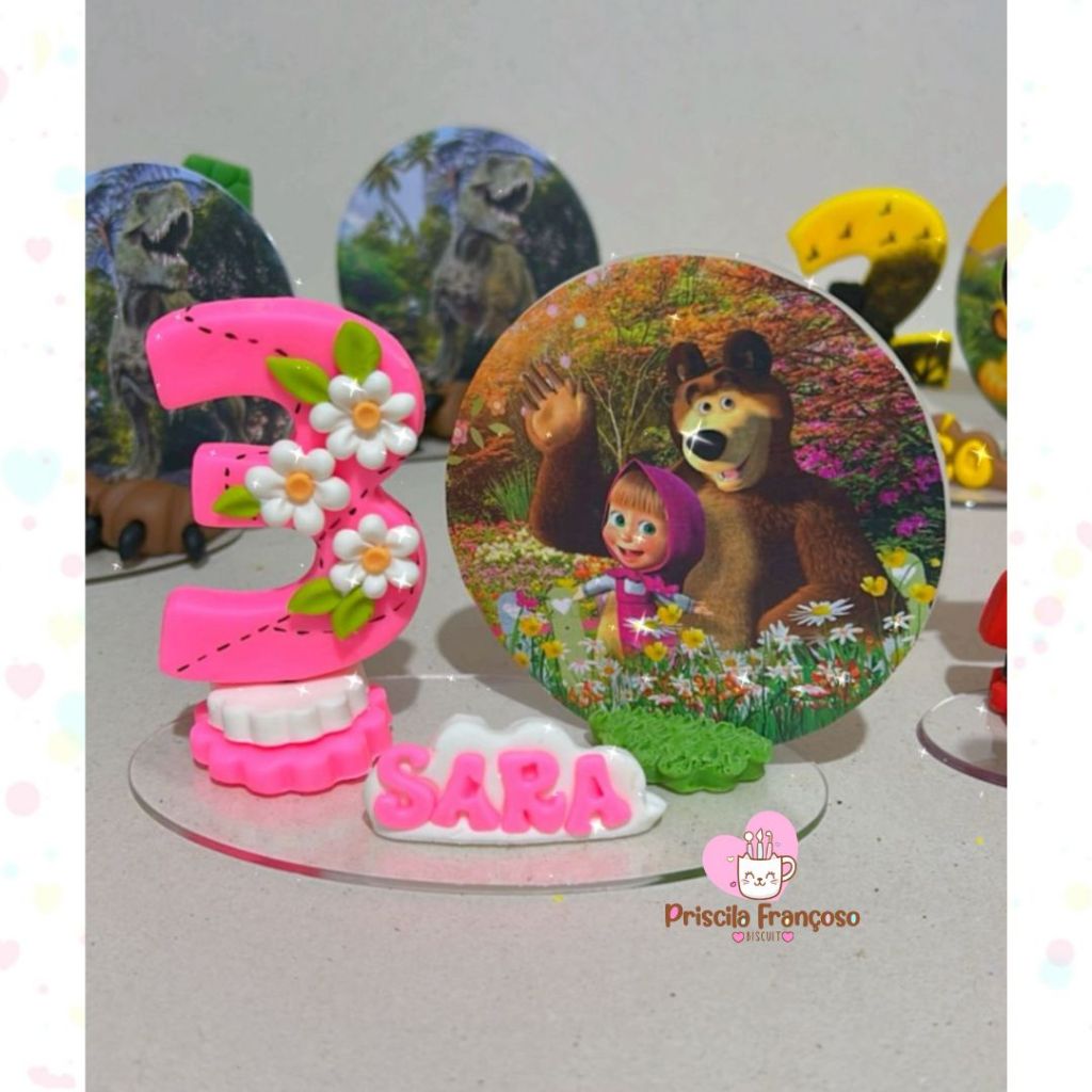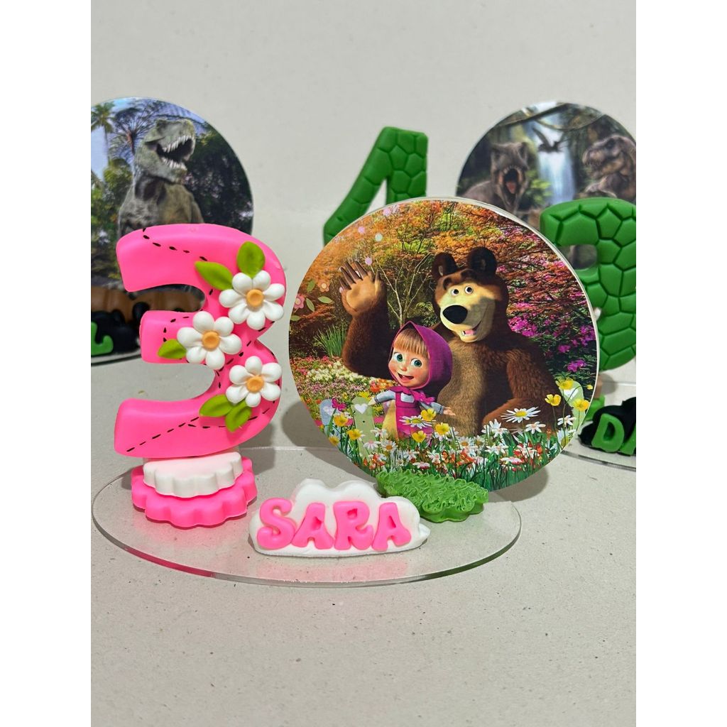 Vela aniversario em biscuit masha e o urso, vela personalizada, topo de bolo, numeros de 1a 9