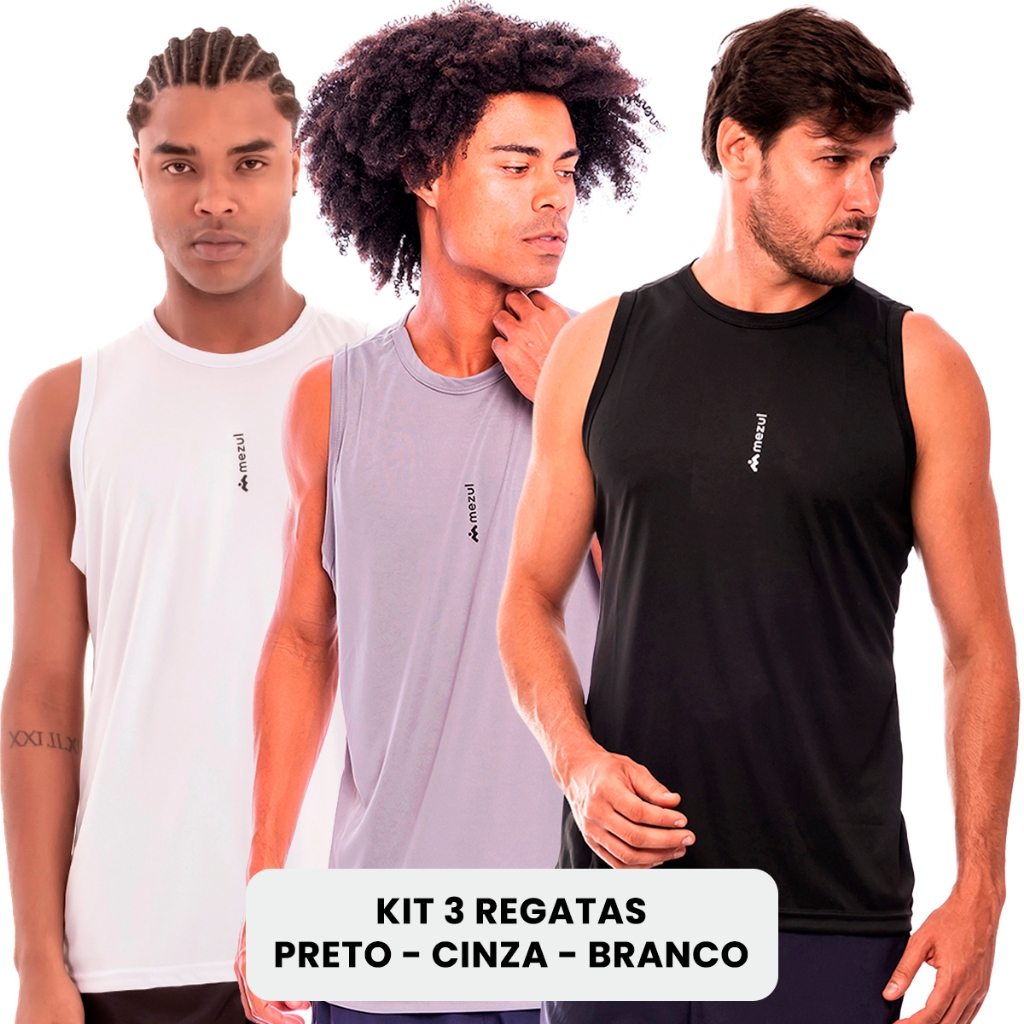 Kit 3 Regatas Dryfit Masculina Premium Fitness para Treino ST7-CP3