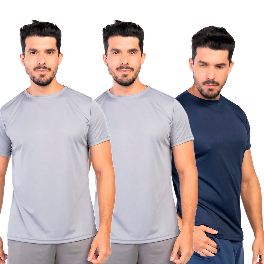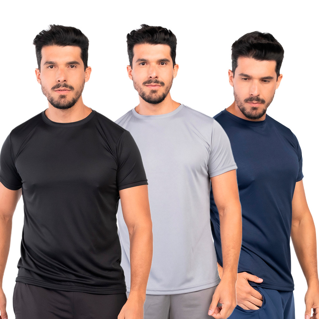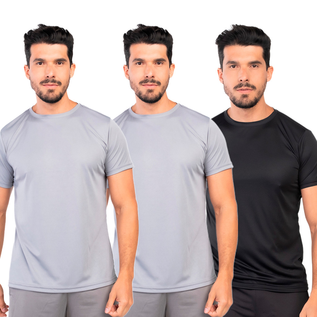 Kit 3 Camisetas Dry Fit Masculina Lisa Flexível Academia Treino LVF2-CP3