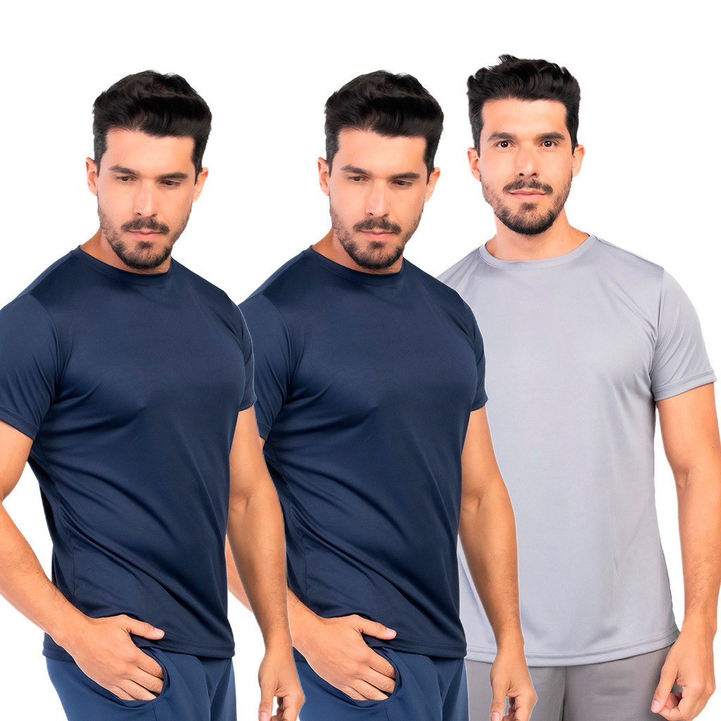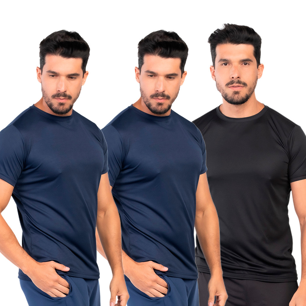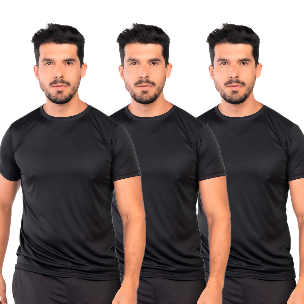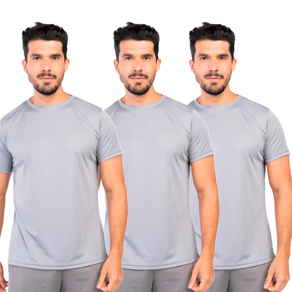 Kit 3 Camisetas Dry Fit Masculina Lisa Flexível Academia Treino LVF2-CP3