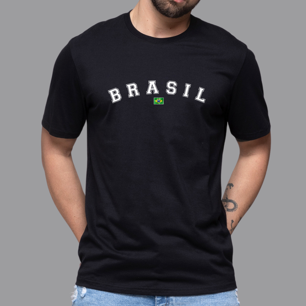 Camiseta Brasil Casual Copa 2026 Torcedor 100% Algodão + Chaveiro Giratório na Faixa