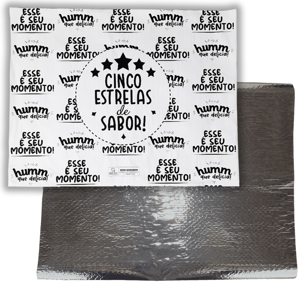 50uni Papel acoplado térmico 30x38 hamburguer lanches aluminio metalizado laminado (50 unidades)