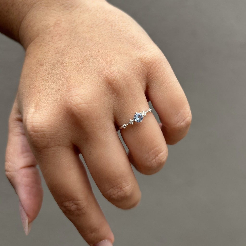 Anel Solitário Luísa Prata 925 (azul água) Noivado, compromisso