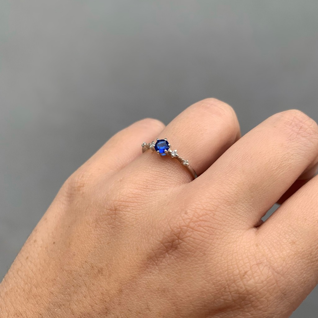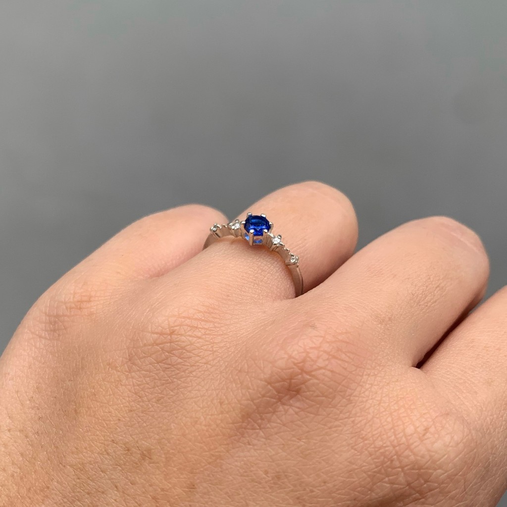 Anel Solitário Luísa (Zirconia Azul Safira) Prata 925 - Compromisso, Formatura, debutante