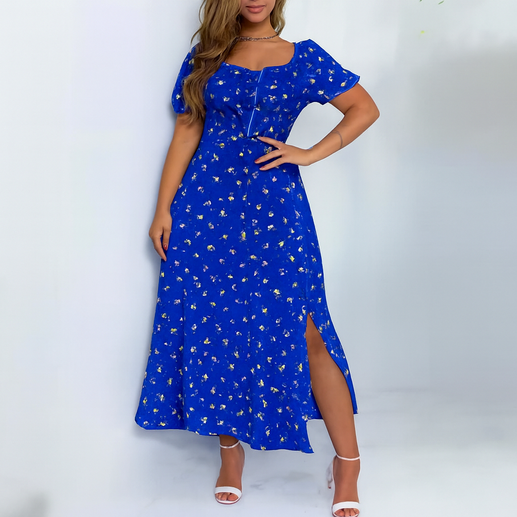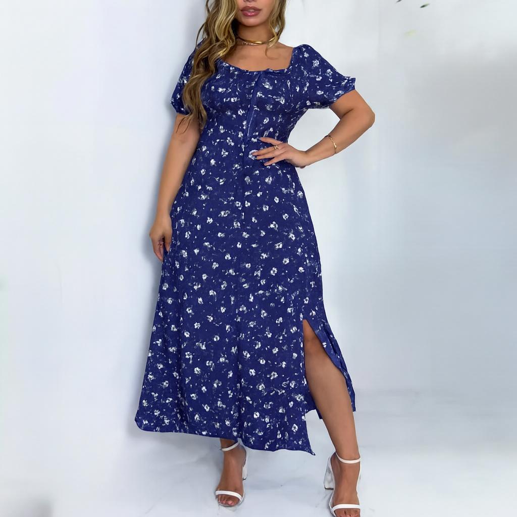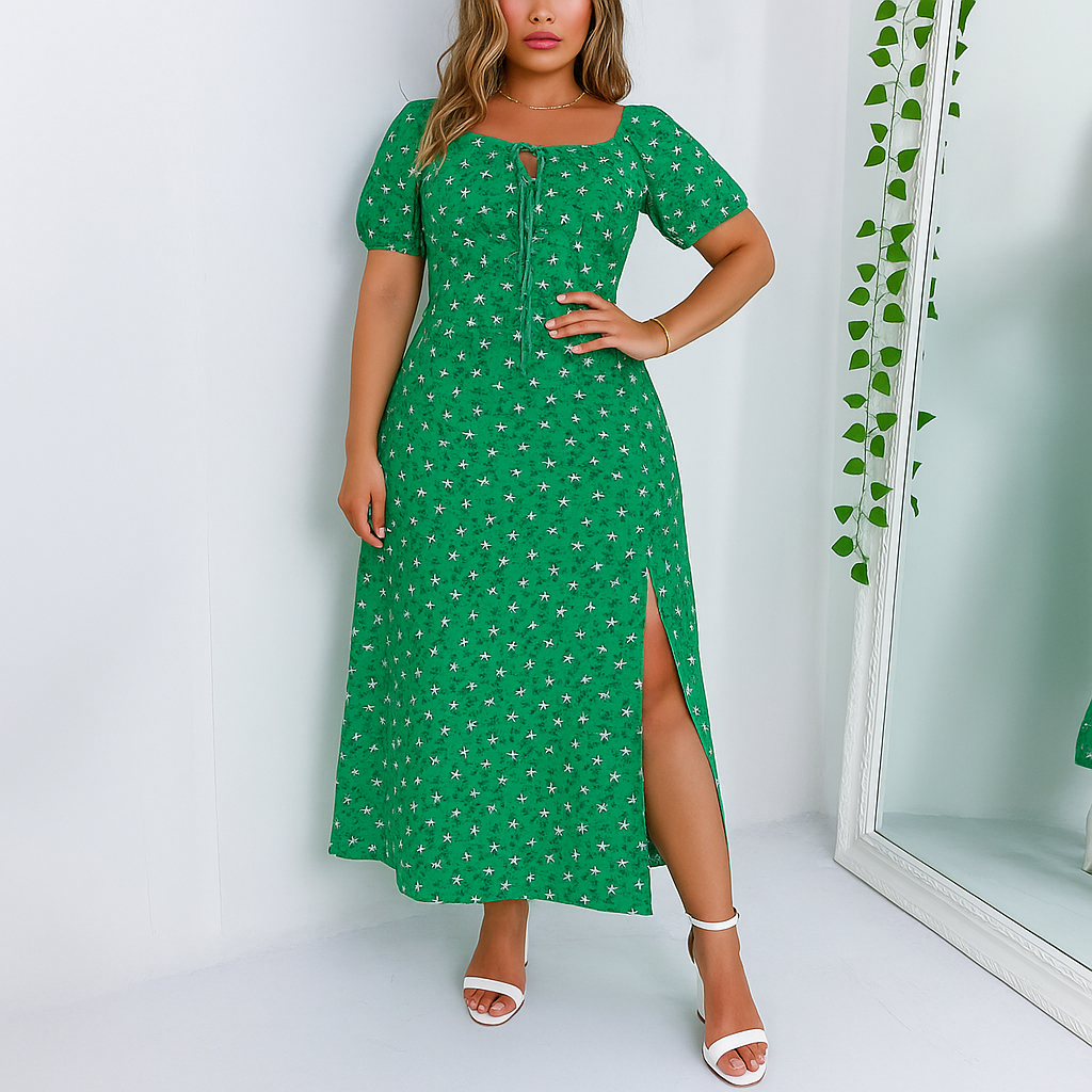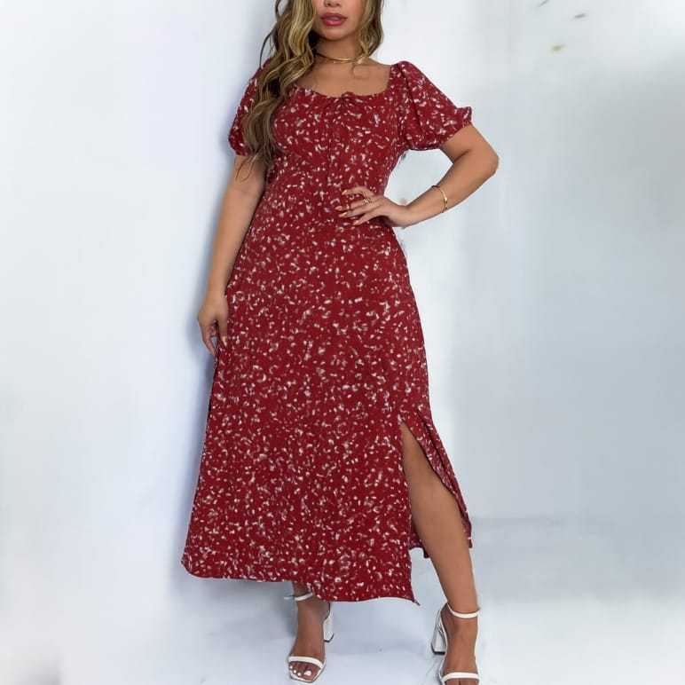 Vestido Floral Femenino Estampado Manga Cinganinha e Elastex Cruzado plus size