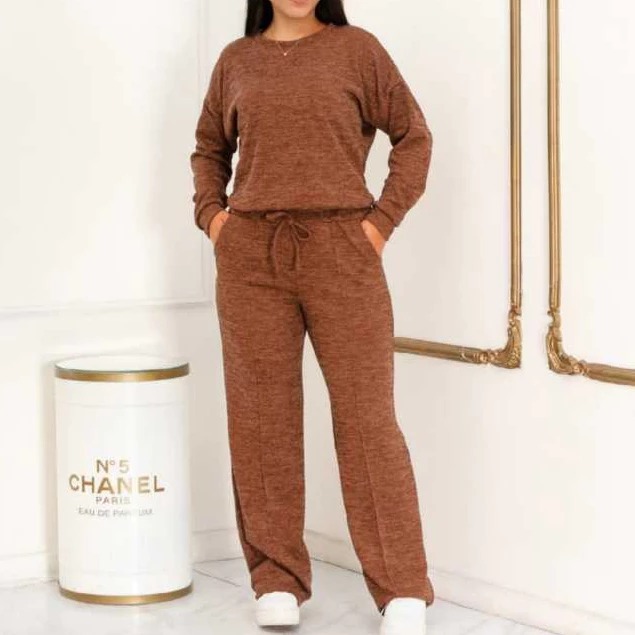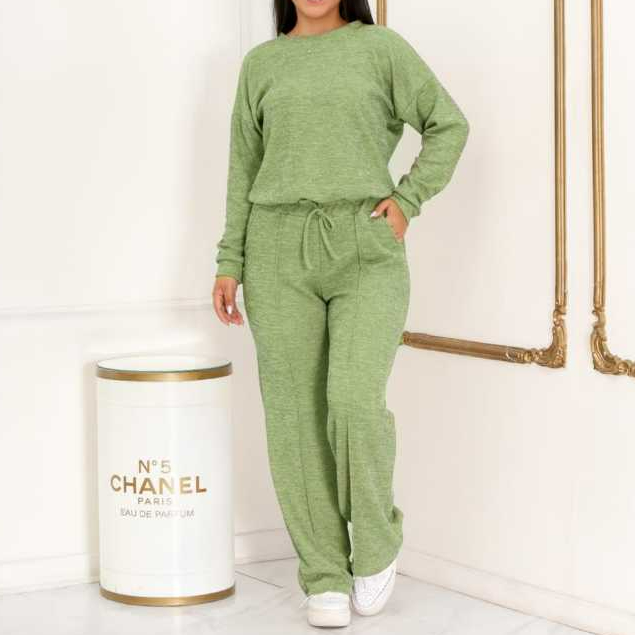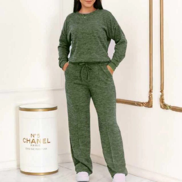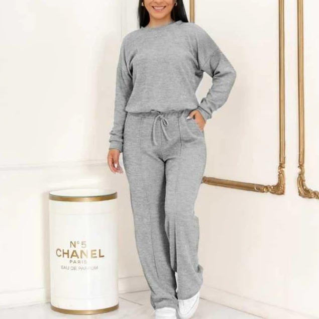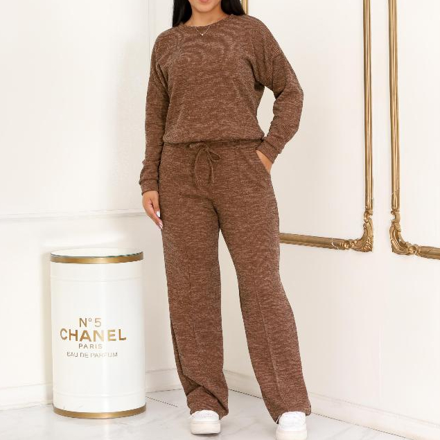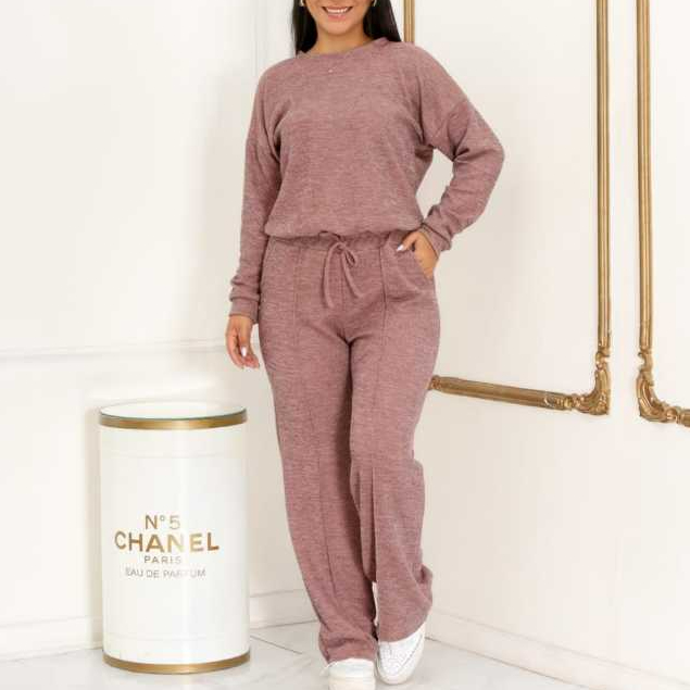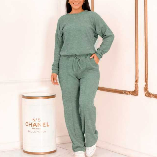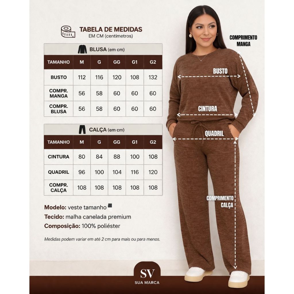 Conjunto Femenino Lanzinha Ribi canelada 2 Peças Blusa e Pantalona plus size
