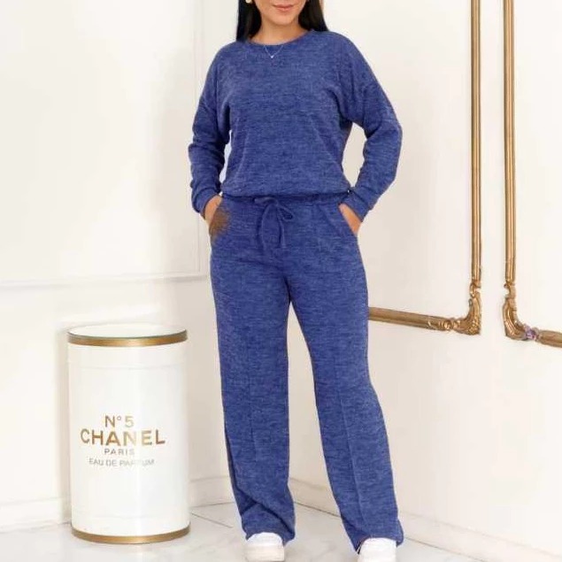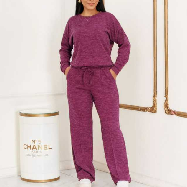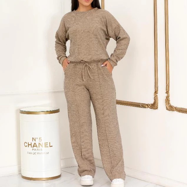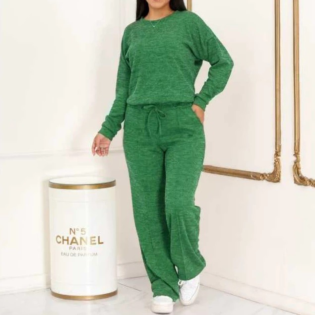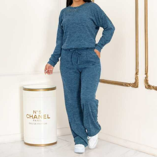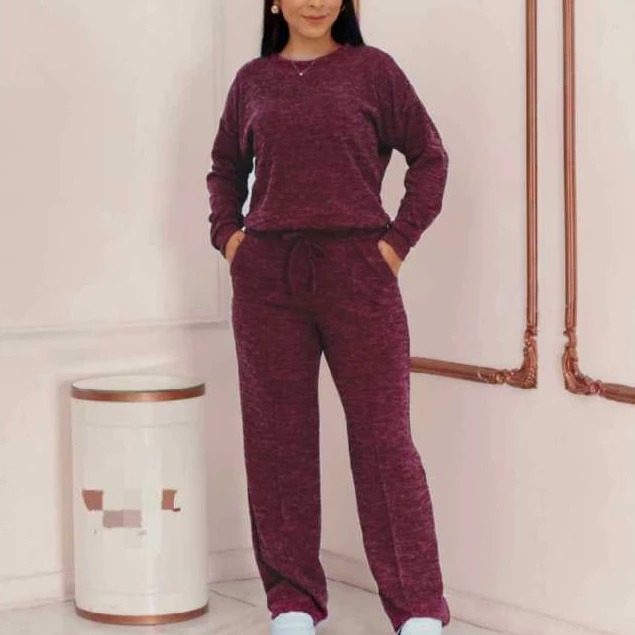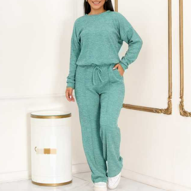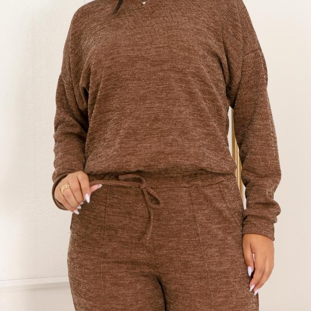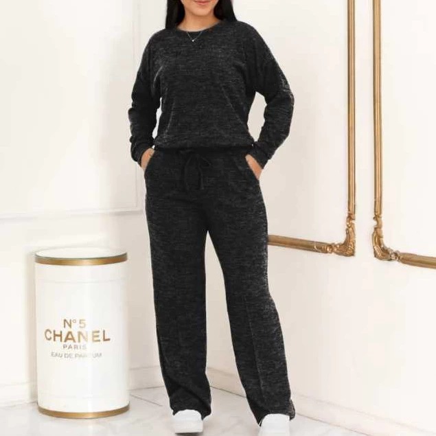 Conjunto Femenino Lanzinha Ribi canelada 2 Peças Blusa e Pantalona plus size